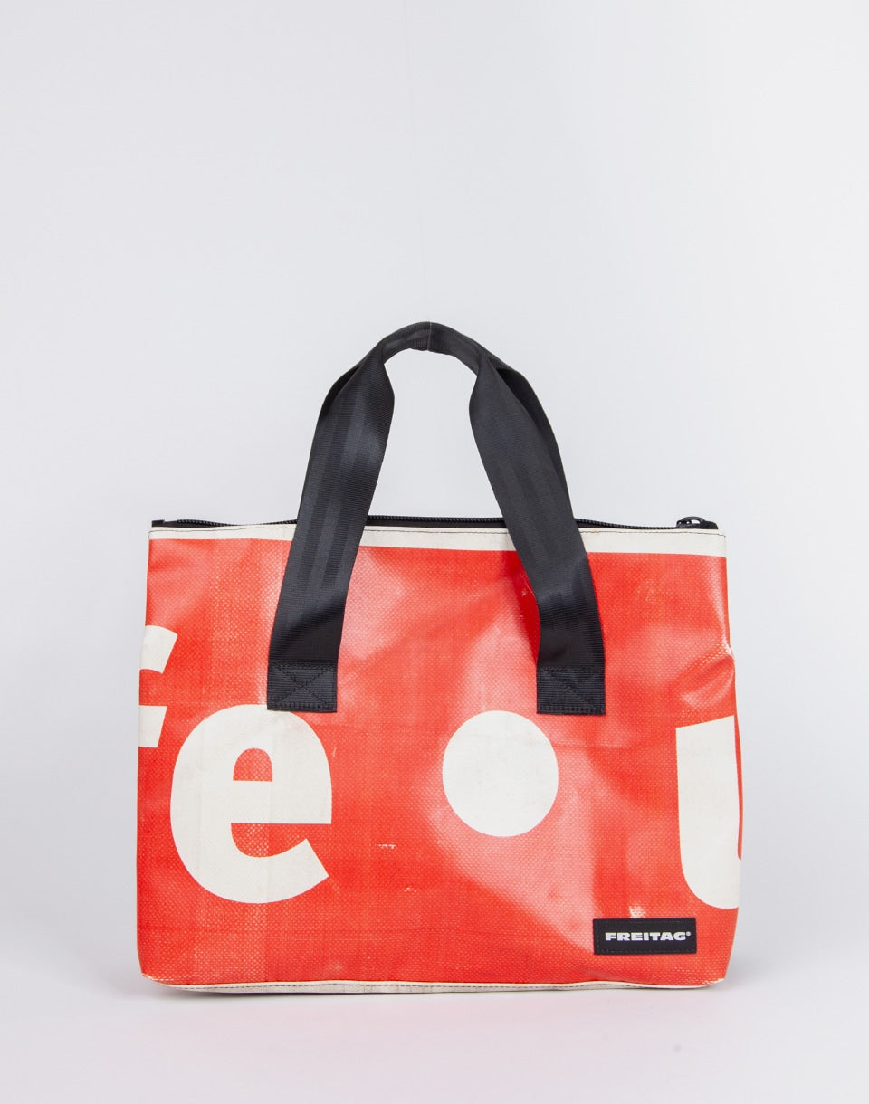 Freitag F45 Lois - Un sac de sport de taille moyenne à base de bâches de camion d'occasion et l'utilisation de ceintures de sécurité. Il plaira avec un compartiment intérieur pratique pour séparer les vêtements en sueur de ceux sèches.