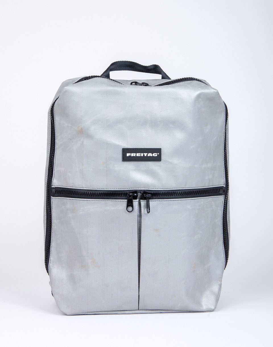 FREITAG F49 Fringe - un sac à dos unique fabriqué à la main en Suisse à partir de bâches de camion usagées et de ceintures de sécurité recyclées.