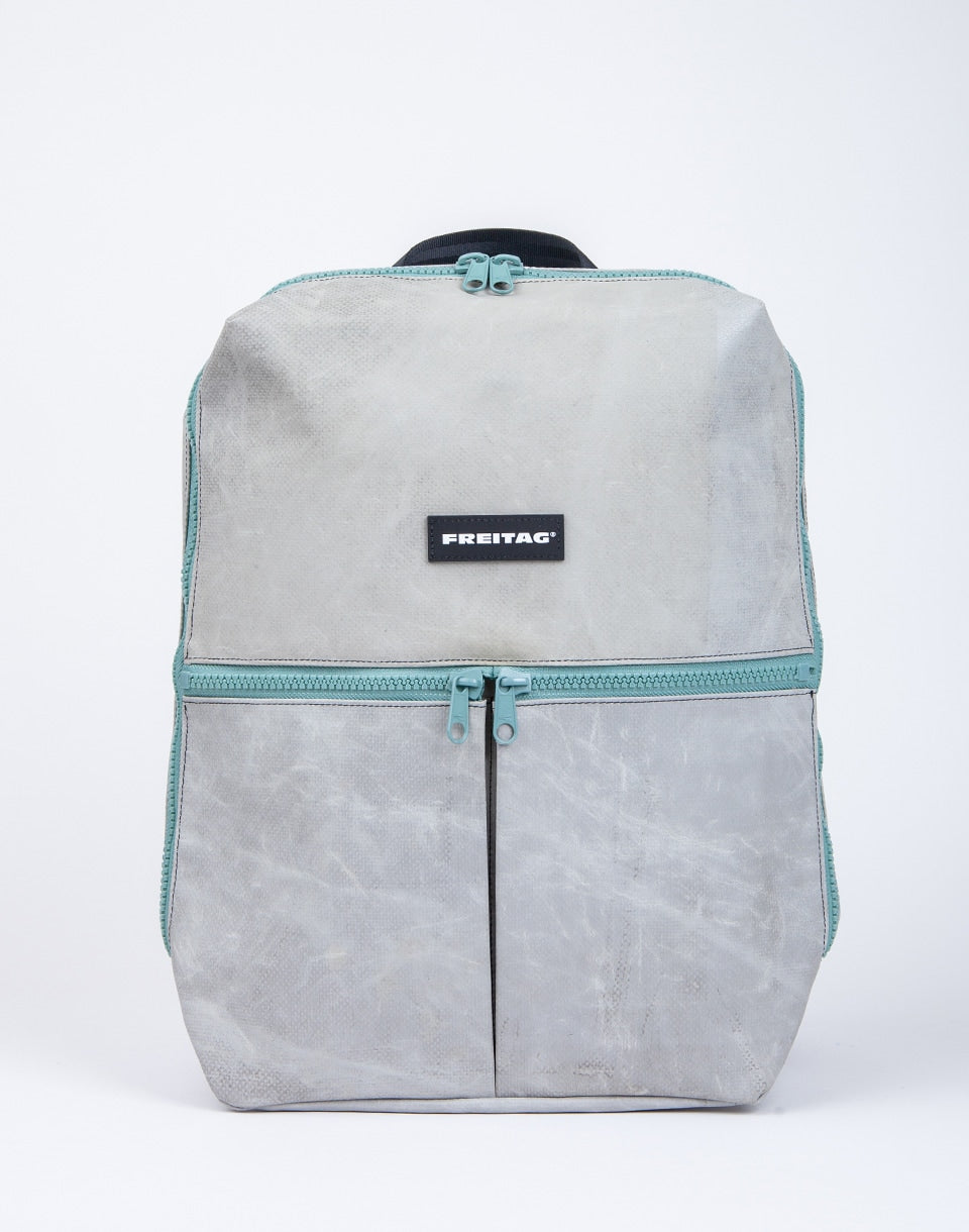 FREITAG F49 Fringe - un sac à dos unique fabriqué à la main en Suisse à partir de bâches de camion usagées et de ceintures de sécurité recyclées.