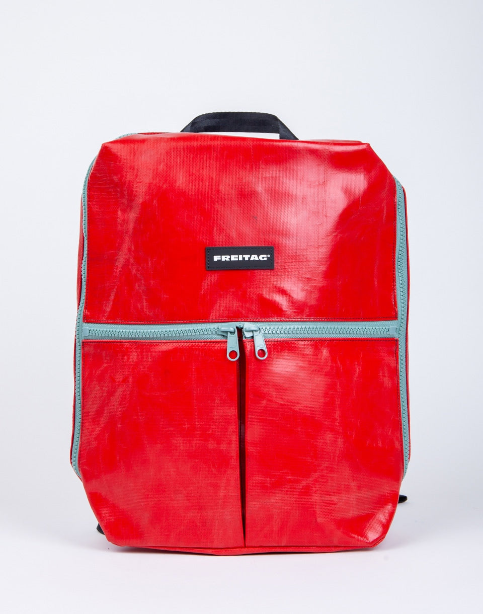 FREITAG F49 Fringe - un sac à dos unique fabriqué à la main en Suisse à partir de bâches de camion usagées et de ceintures de sécurité recyclées.