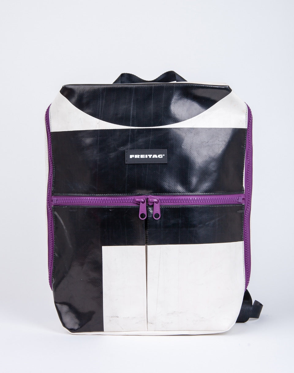 FREITAG F49 Fringe - un sac à dos unique fabriqué à la main en Suisse à partir de bâches de camion usagées et de ceintures de sécurité recyclées.