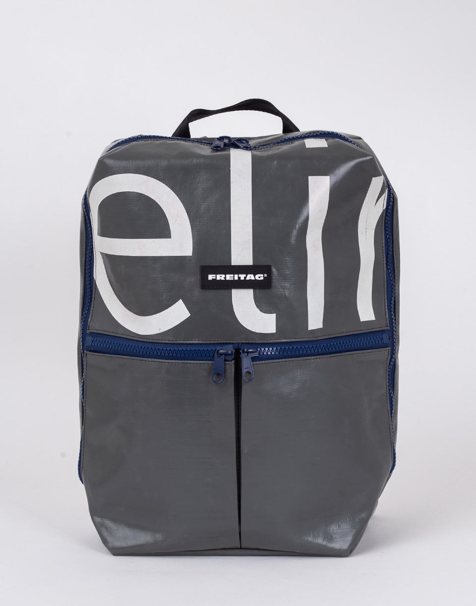FREITAG F49 Fringe - a unique Swiss handmade backpack made from used truck tarps and recycled seat belts.