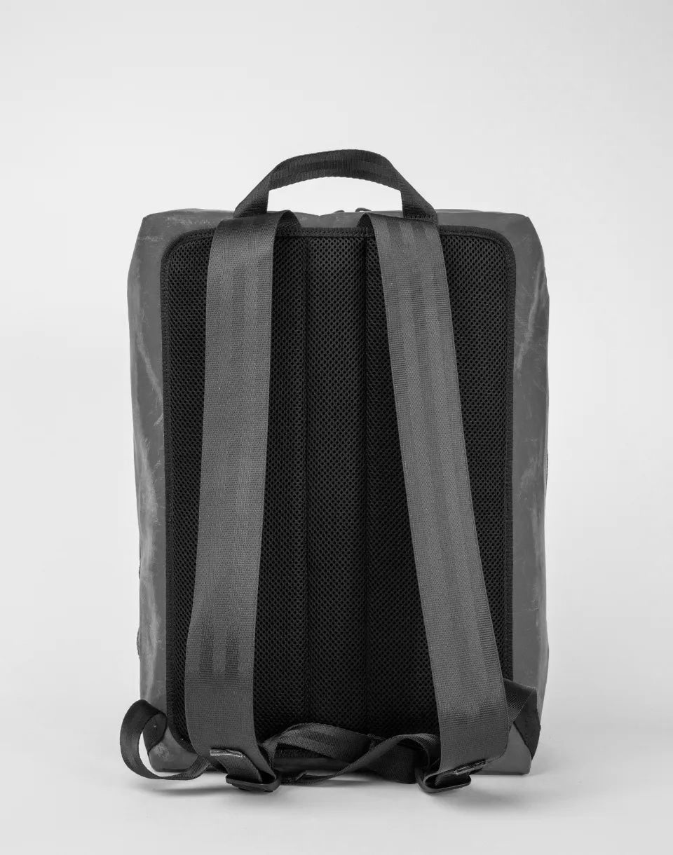 FREITAG F49 Fringe - a unique Swiss handmade backpack made from used truck tarps and recycled seat belts.