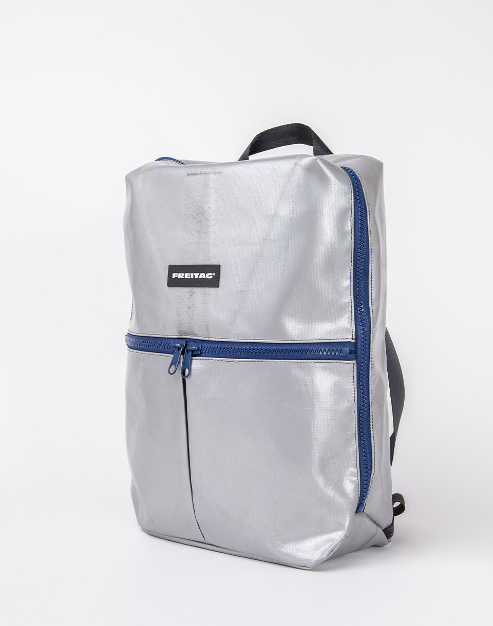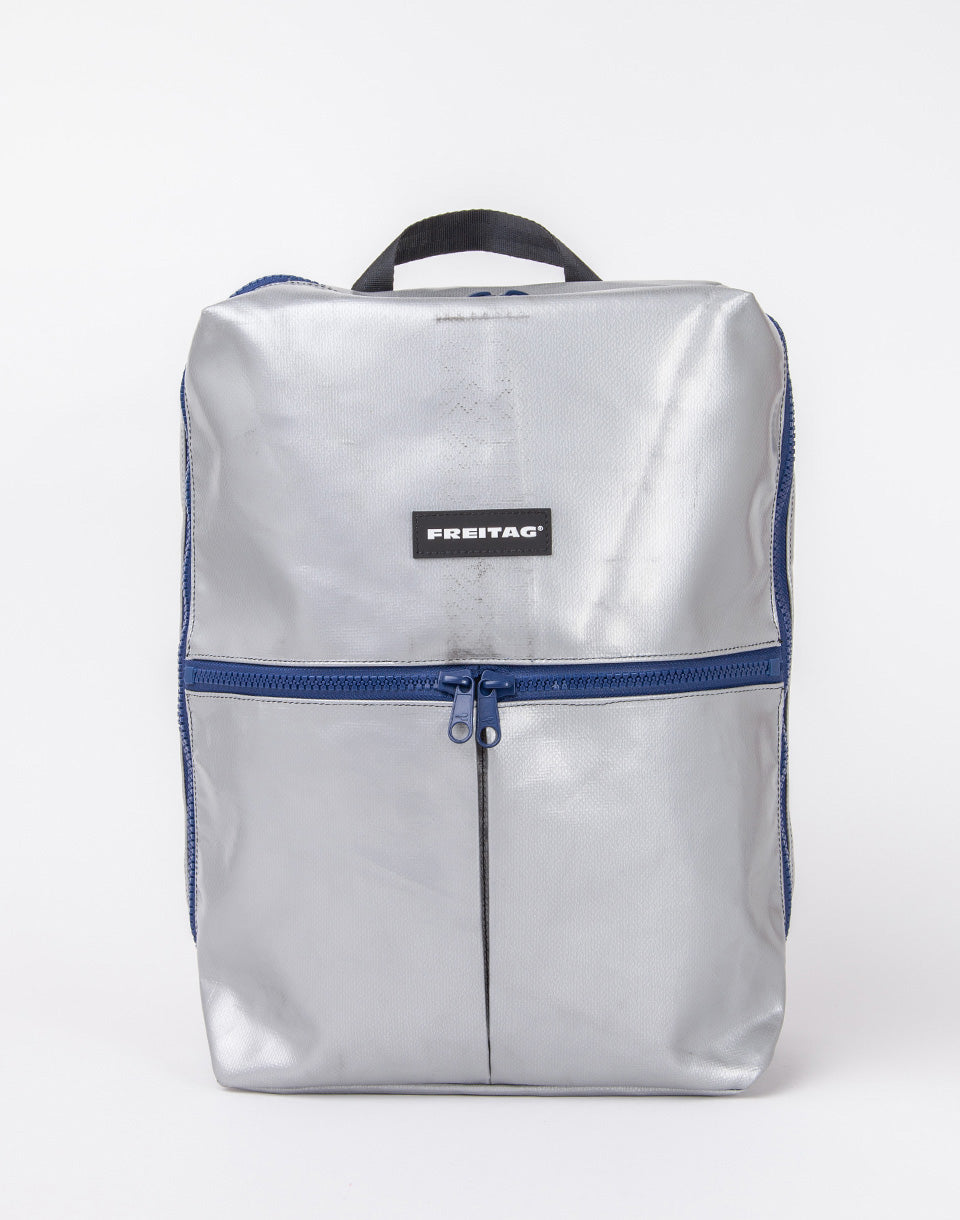 Freitag F49 Fringe - Un sac à dos fait à la main unique fait à partir de bâches de camion d'occasion et de ceintures de sécurité recyclées.