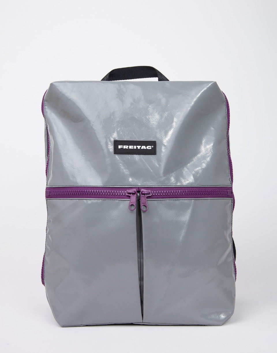 Freitag F49 Fringe - Un sac à dos fait à la main unique fait à partir de bâches de camion d'occasion et de ceintures de sécurité recyclées.