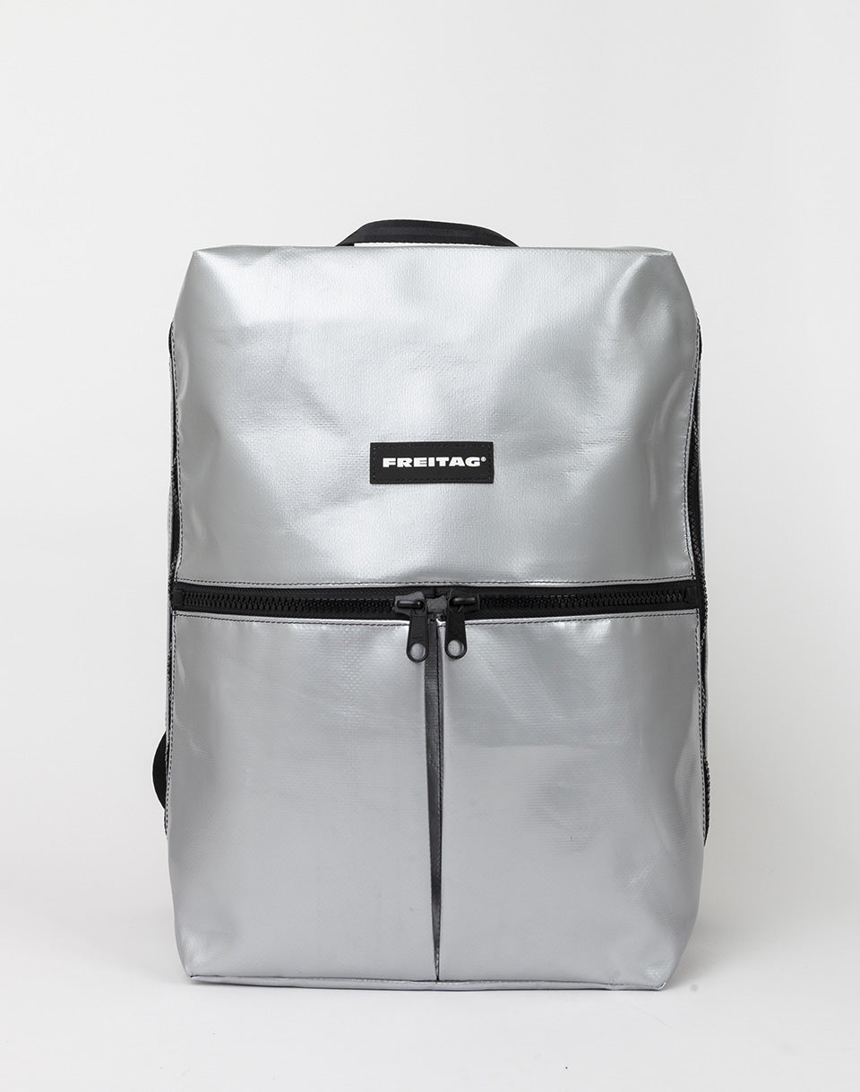 Freitag F49 Fringe - Un sac à dos fait à la main unique fait à partir de bâches de camion d'occasion et de ceintures de sécurité recyclées.