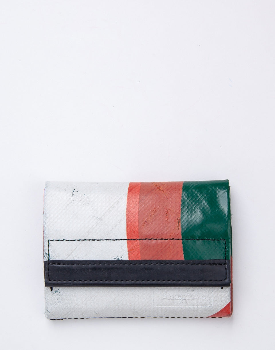 FREITAG F50 ET - un portefeuille suisse unique fabriqué à partir de bâches de camion usagées et de vieilles chambres à air de vélo.