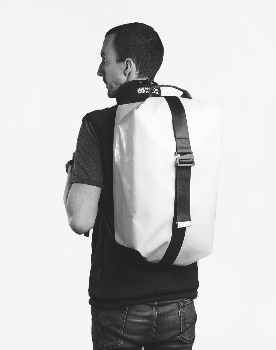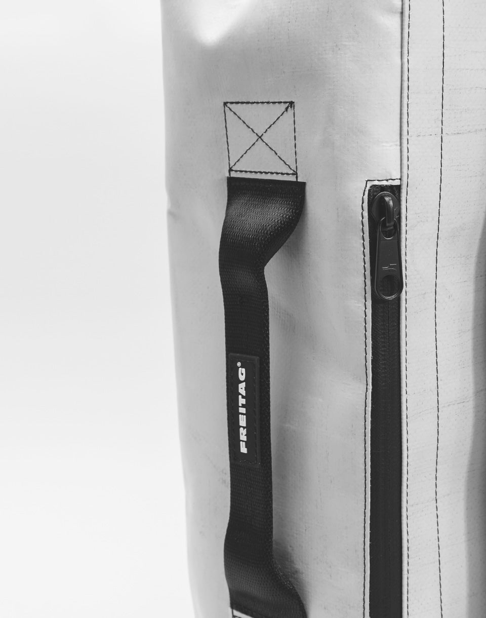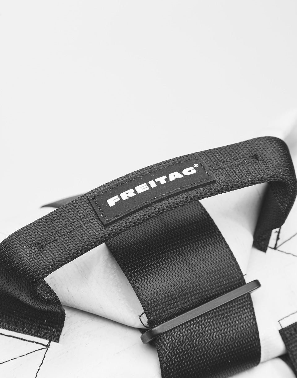 FREITAG F511 Skipper - unique Swiss handmade backpack using used truck tarpaulins and seat belts.