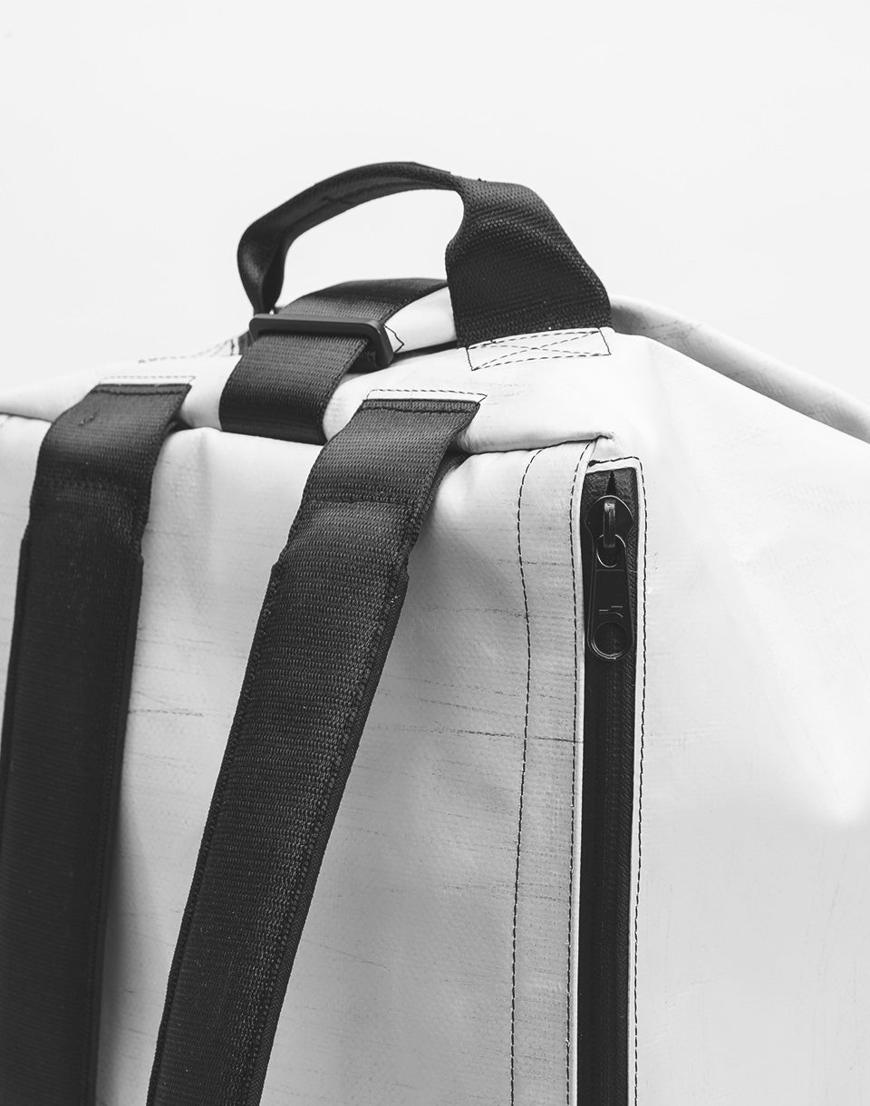 FREITAG F511 Skipper - unique Swiss handmade backpack using used truck tarpaulins and seat belts.