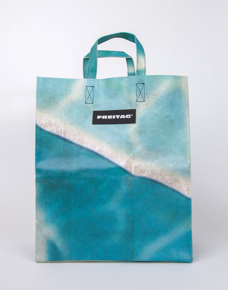 Freitag F52 Miami Vice - un sac à provisions unique à base de bâches de camion d'occasion - inspirées de sacs en papier classiques.