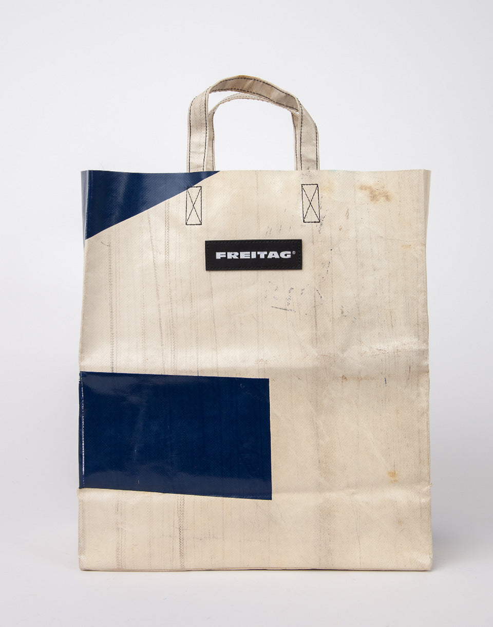 Freitag F52 Miami Vice - un sac à provisions unique à base de bâches de camion d'occasion - inspirées de sacs en papier classiques.