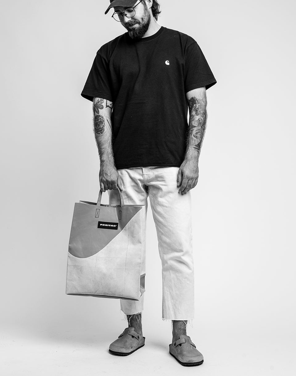 Freitag F52 Miami Vice - un sac à provisions unique à base de bâches de camion d'occasion - inspirées de sacs en papier classiques.