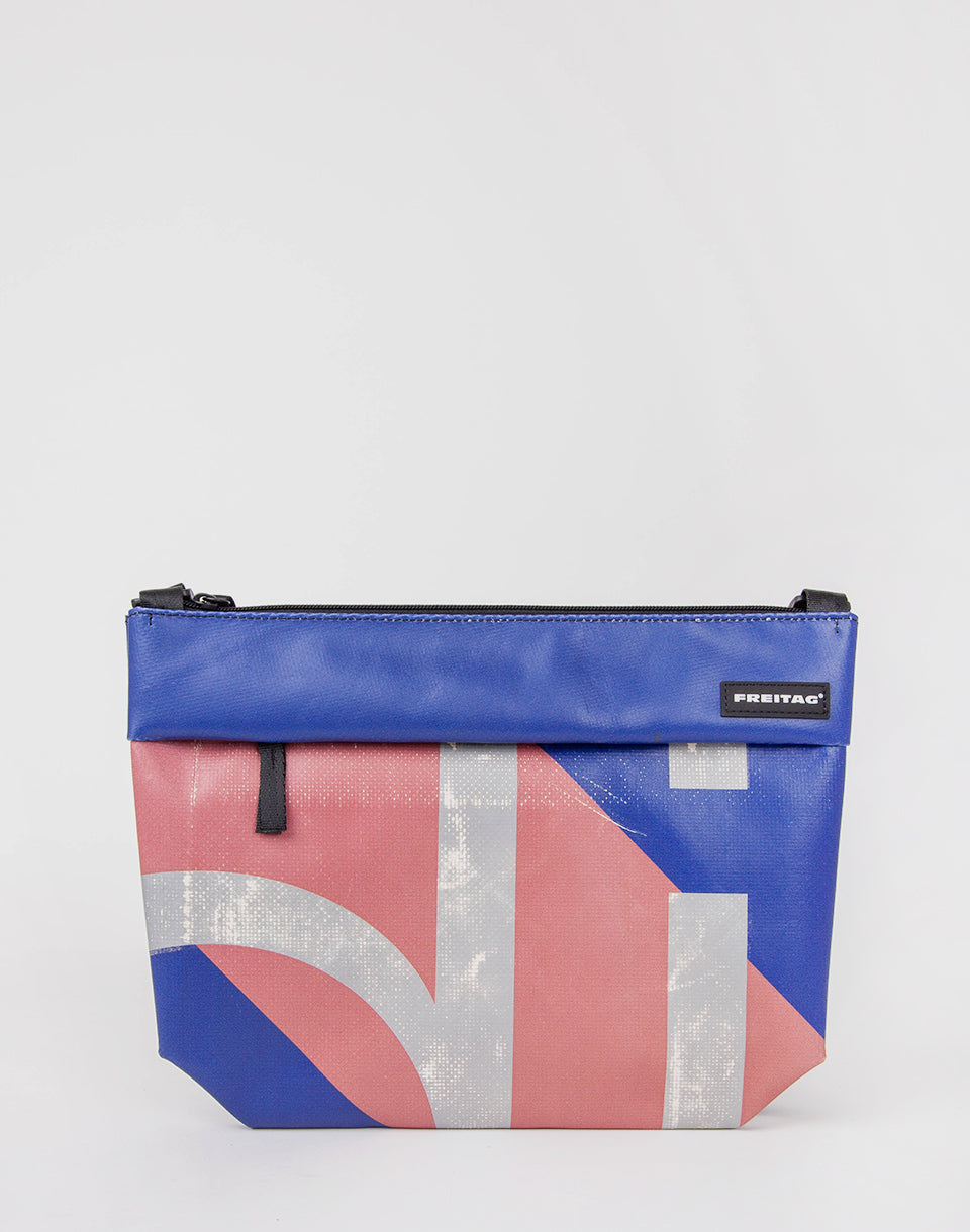 FREITAG F553 Lou - un sac bandoulière unique fabriqué à partir de bâches de camion usagées, en utilisant de vieilles ceintures de sécurité et des chambres à air de vélos, le tout coupé et cousu à la main.