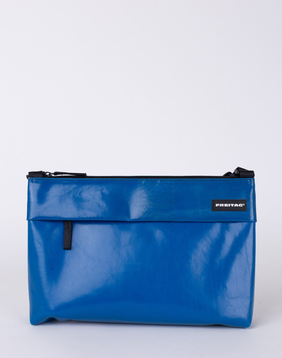 FREITAG F553 Lou - a unique crossbody made from used truck tarps, using old seat belts and inner tubes from bicycles, all hand-cut and sewn.