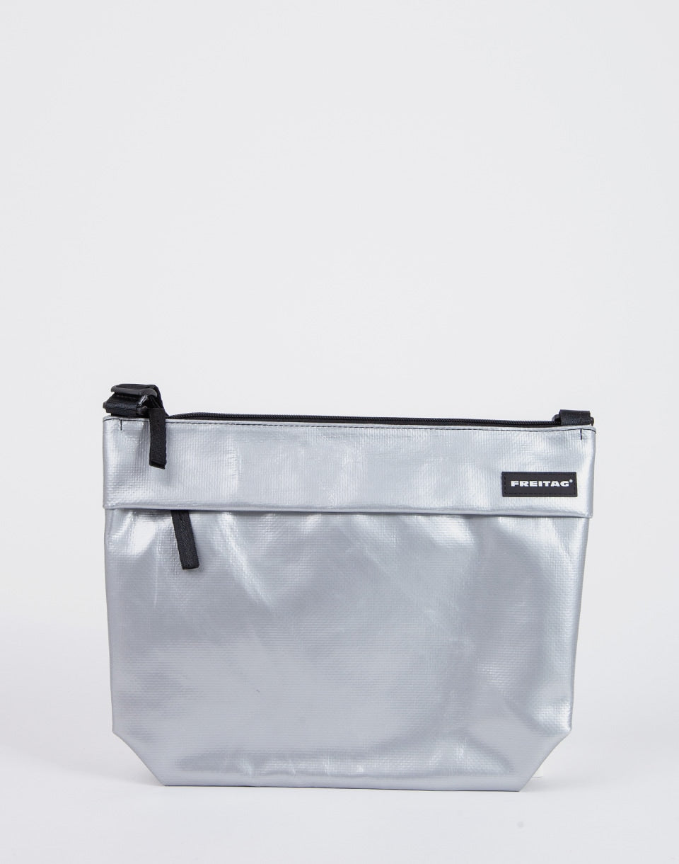 FREITAG F553 Lou - un sac bandoulière unique fabriqué à partir de bâches de camion usagées, en utilisant de vieilles ceintures de sécurité et des chambres à air de vélos, le tout coupé et cousu à la main.