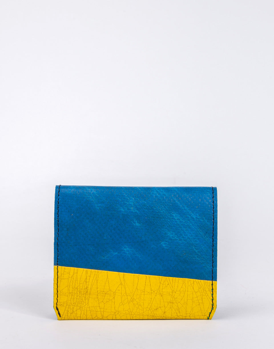 Freitag F558 Leonard - Un portefeuille pliant simple avec un compartiment de pièces et un espace pour vos cartes. De plus, il est fabriqué à partir de bâches de camions d'occasion, ce qui fait que chaque portefeuille produit une pièce complètement unique.
