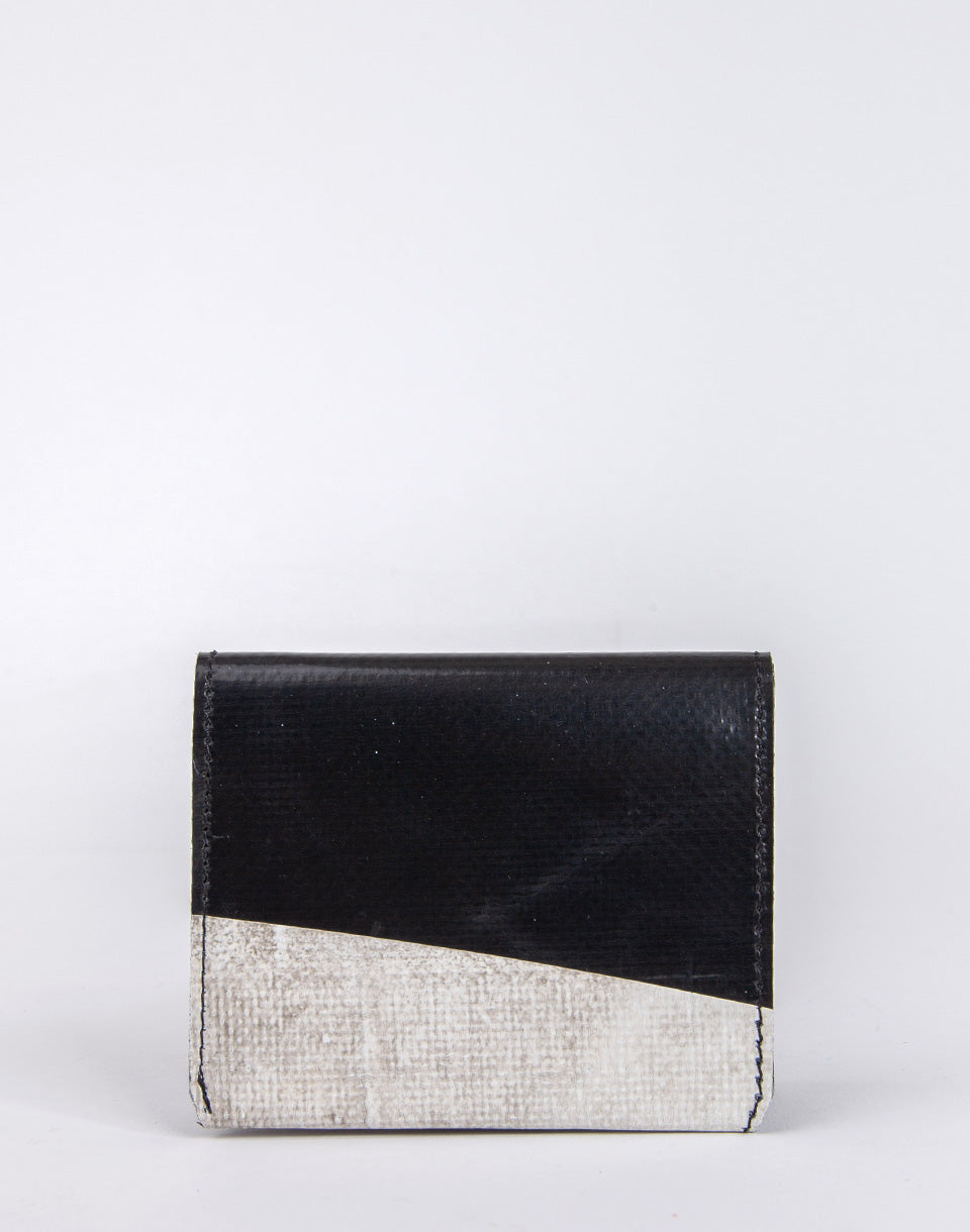 Freitag F558 Leonard - Un portefeuille pliant simple avec un compartiment de pièces et un espace pour vos cartes. De plus, il est fabriqué à partir de bâches de camions d'occasion, ce qui fait que chaque portefeuille produit une pièce complètement unique.