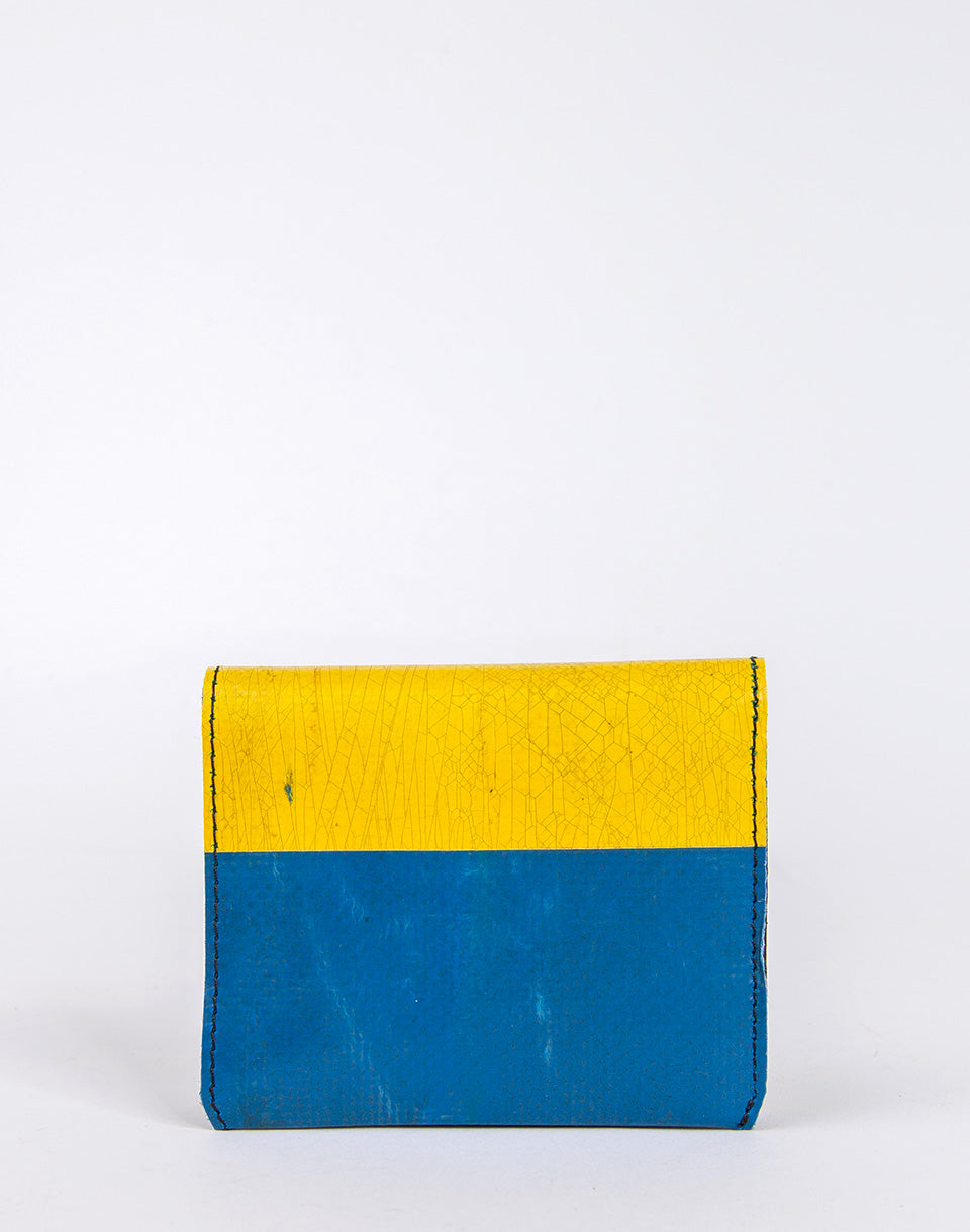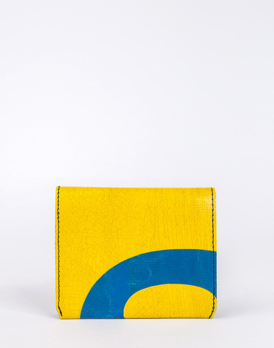Freitag F558 Leonard - Un portefeuille pliant simple avec un compartiment de pièces et un espace pour vos cartes. De plus, il est fabriqué à partir de bâches de camions d'occasion, ce qui fait que chaque portefeuille produit une pièce complètement unique.