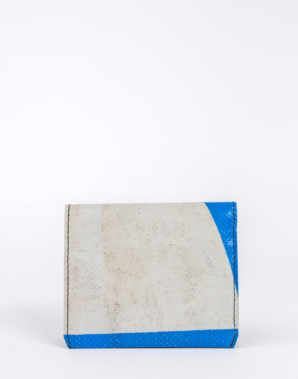 Freitag F558 Leonard - Un portefeuille pliant simple avec un compartiment de pièces et un espace pour vos cartes. De plus, il est fabriqué à partir de bâches de camions d'occasion, ce qui fait que chaque portefeuille produit une pièce complètement unique.