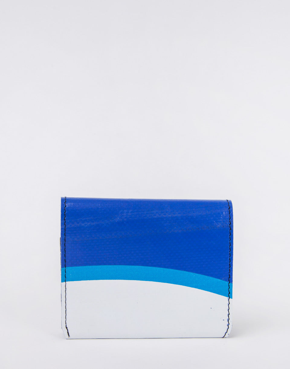 Freitag F558 Leonard - Un portefeuille pliant simple avec un compartiment de pièces et un espace pour vos cartes. De plus, il est fabriqué à partir de bâches de camions d'occasion, ce qui fait que chaque portefeuille produit une pièce complètement unique.