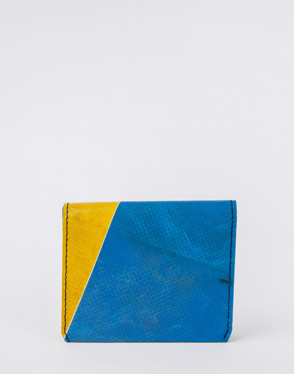 Freitag F558 Leonard - Un portefeuille pliant simple avec un compartiment de pièces et un espace pour vos cartes. De plus, il est fabriqué à partir de bâches de camions d'occasion, ce qui fait que chaque portefeuille produit une pièce complètement unique.