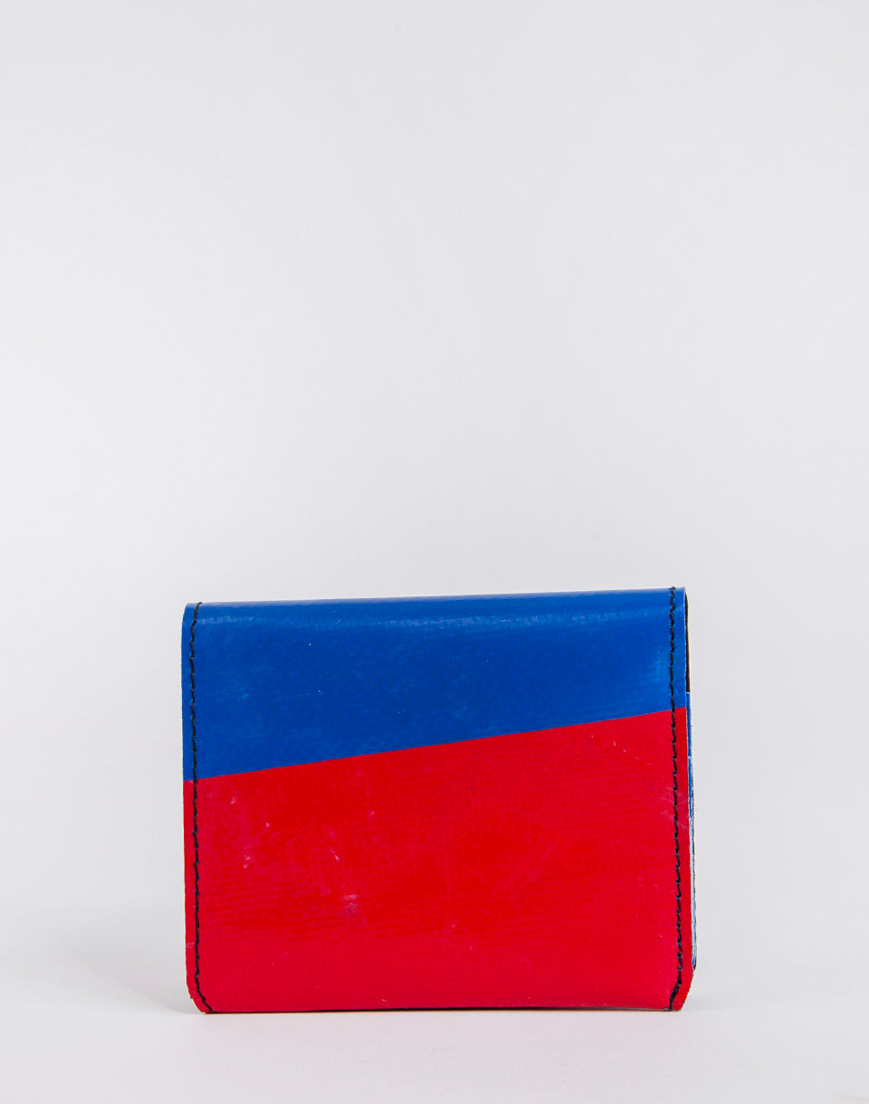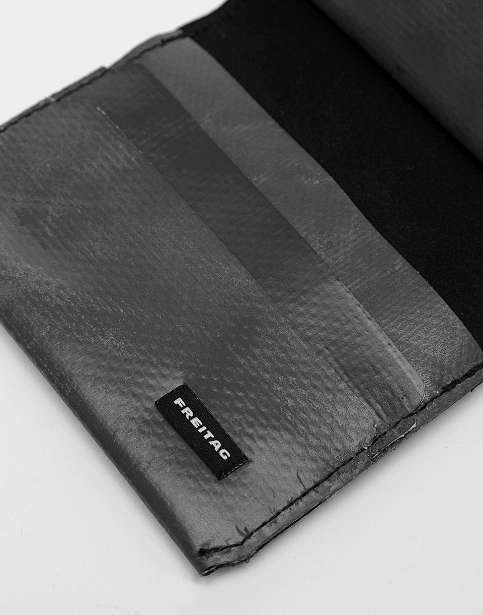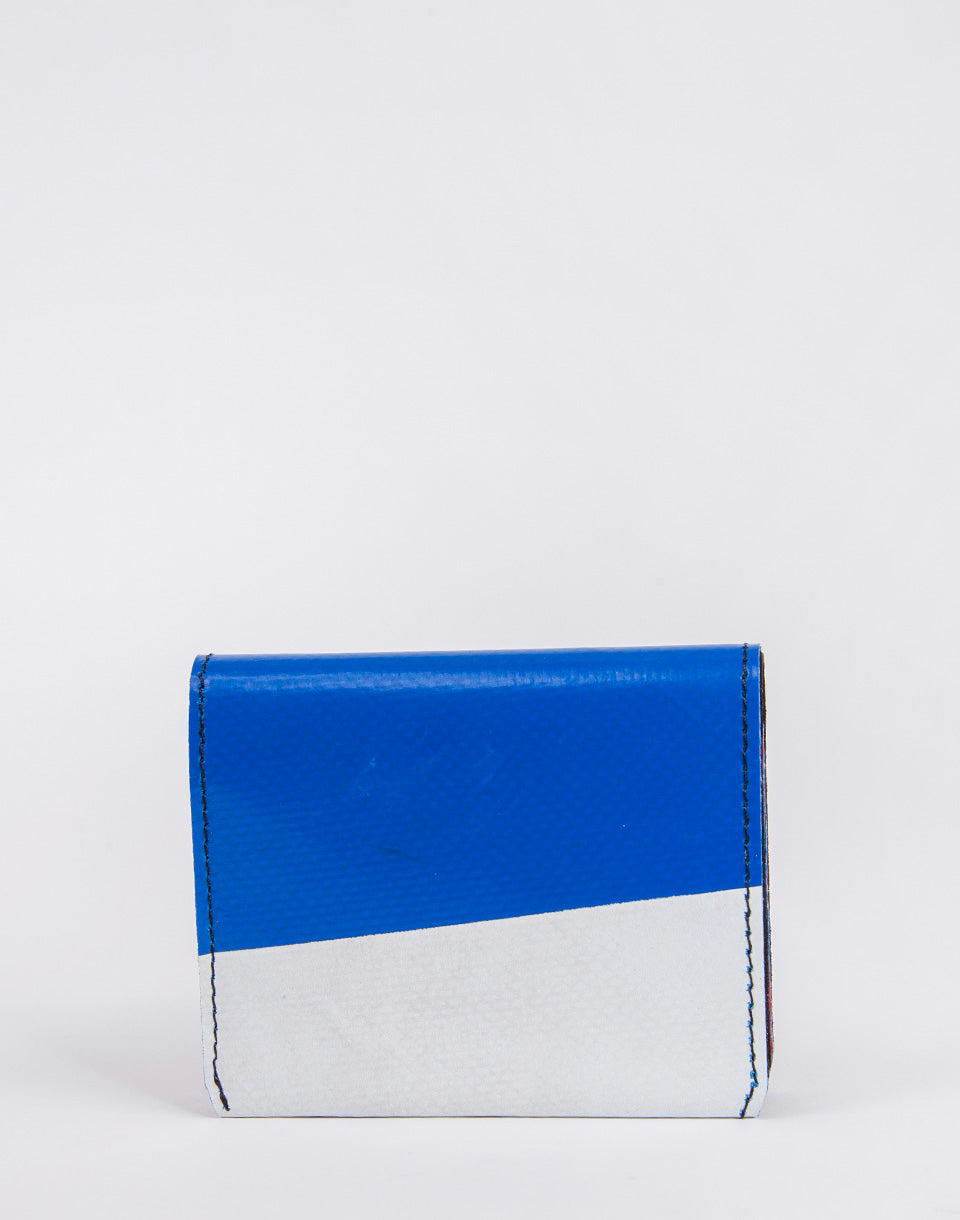 Freitag F558 Leonard - Un portefeuille pliant simple avec un compartiment de pièces et un espace pour vos cartes. De plus, il est fabriqué à partir de bâches de camions d'occasion, ce qui fait que chaque portefeuille produit une pièce complètement unique.