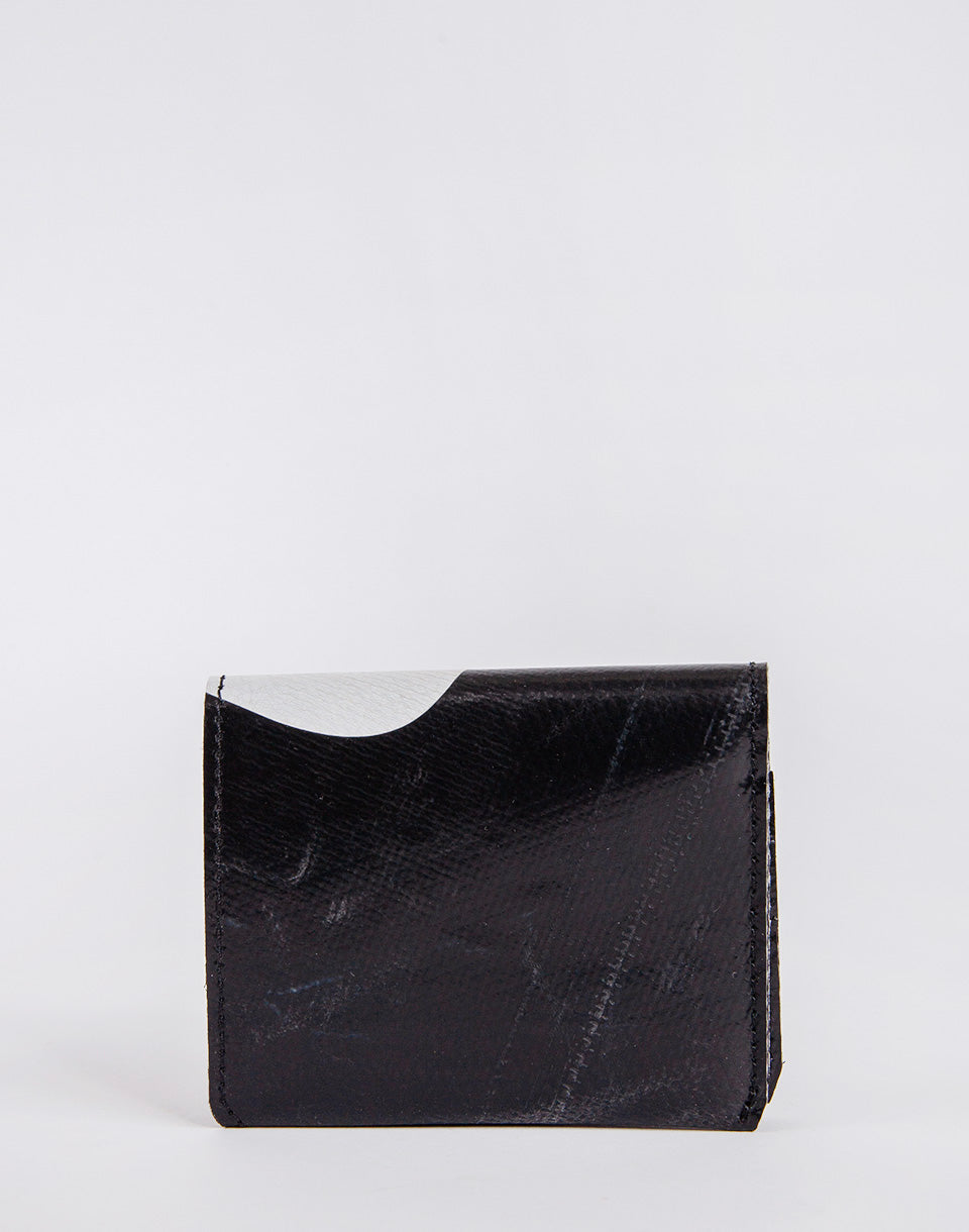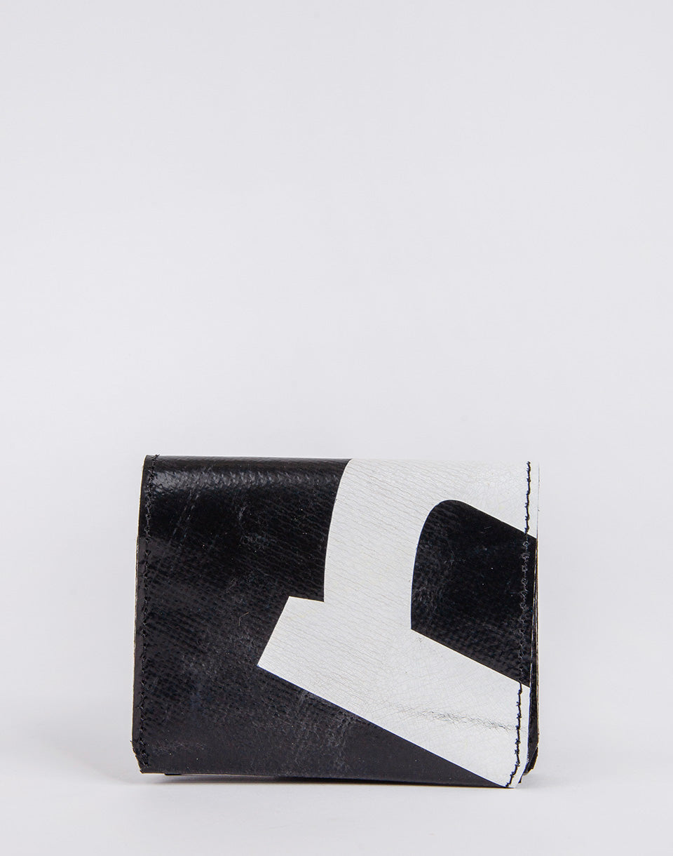 Freitag F558 Leonard - Un portefeuille pliant simple avec un compartiment de pièces et un espace pour vos cartes. De plus, il est fabriqué à partir de bâches de camions d'occasion, ce qui fait que chaque portefeuille produit une pièce complètement unique.
