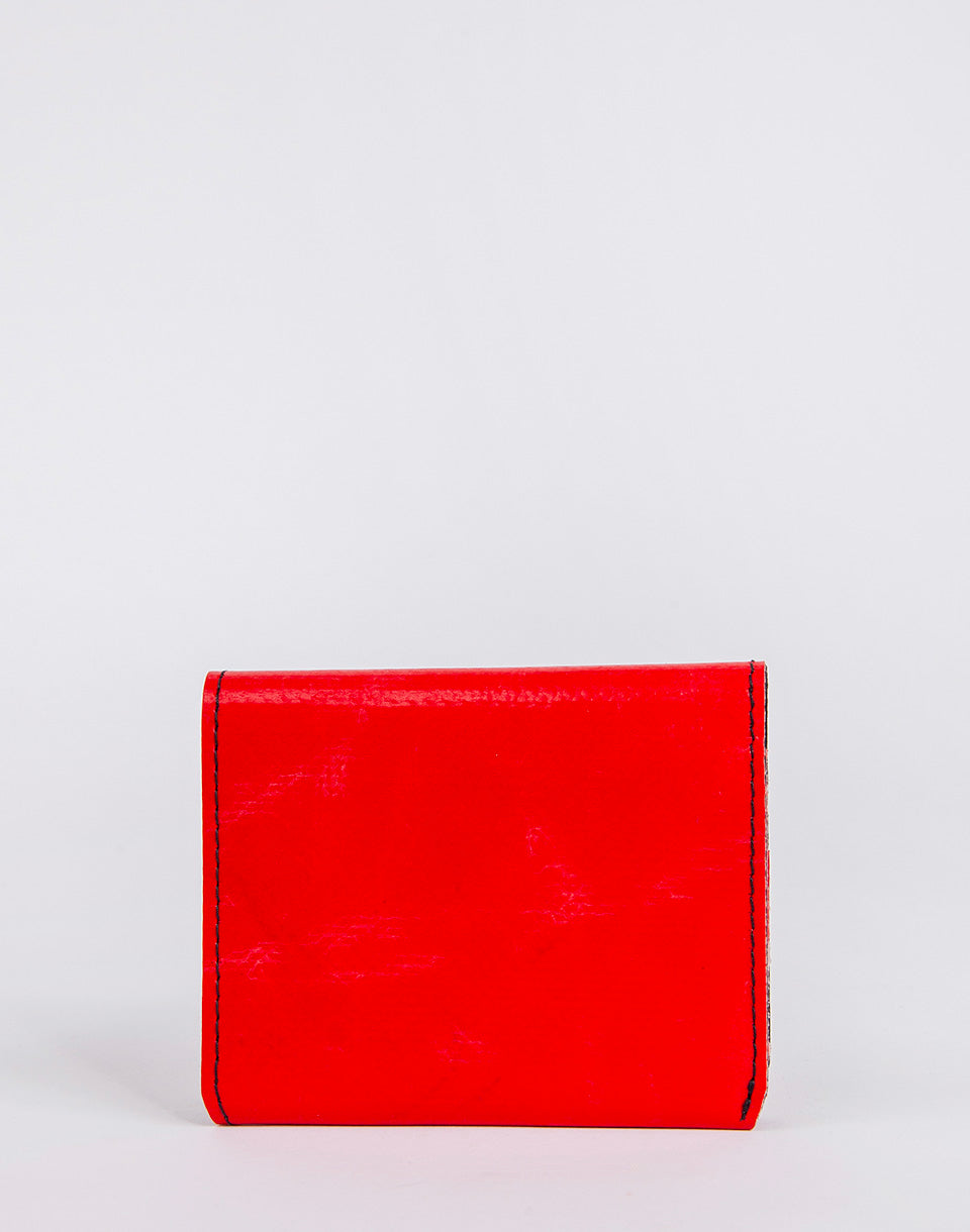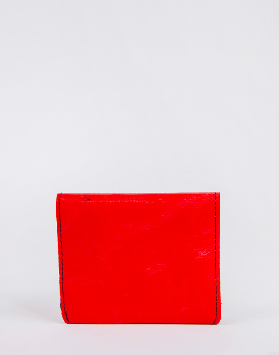 Freitag F558 Leonard - Un portefeuille pliant simple avec un compartiment de pièces et un espace pour vos cartes. De plus, il est fabriqué à partir de bâches de camions d'occasion, ce qui fait que chaque portefeuille produit une pièce complètement unique.