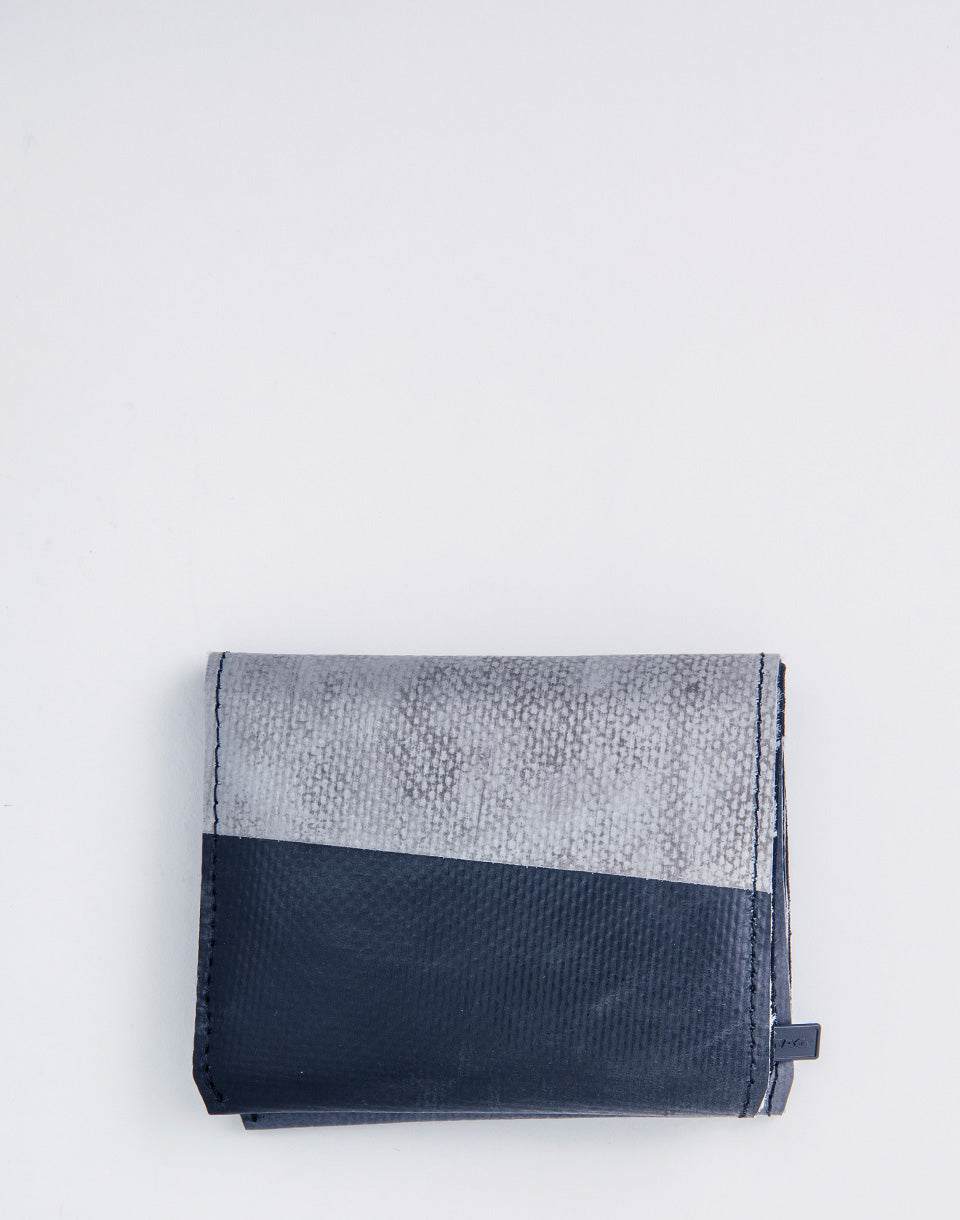 Freitag F558 Leonard - Un portefeuille pliant simple avec un compartiment de pièces et un espace pour vos cartes. De plus, il est fabriqué à partir de bâches de camions d'occasion, ce qui fait que chaque portefeuille produit une pièce complètement unique.