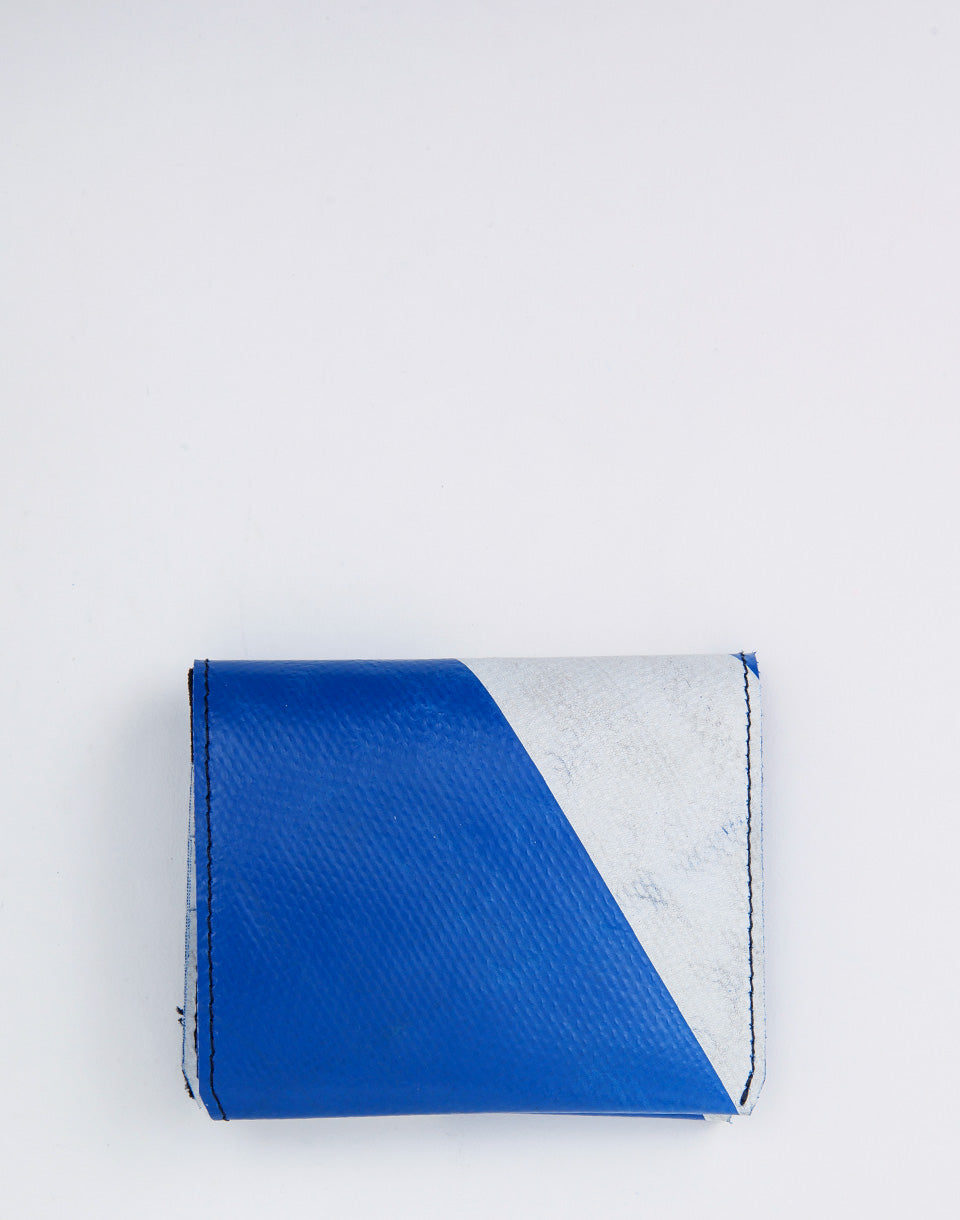 Freitag F558 Leonard - Un portefeuille pliant simple avec un compartiment de pièces et un espace pour vos cartes. De plus, il est fabriqué à partir de bâches de camions d'occasion, ce qui fait que chaque portefeuille produit une pièce complètement unique.