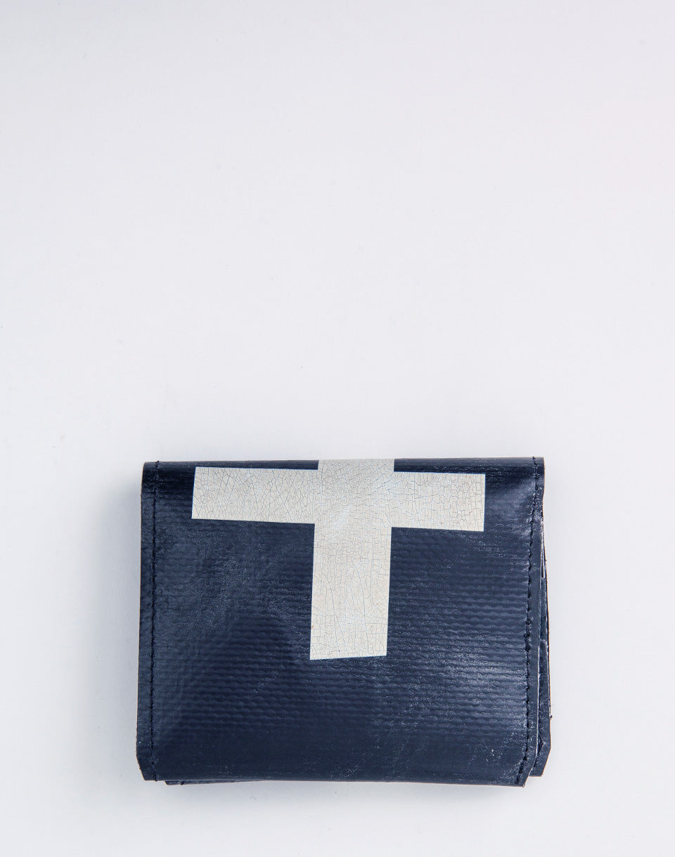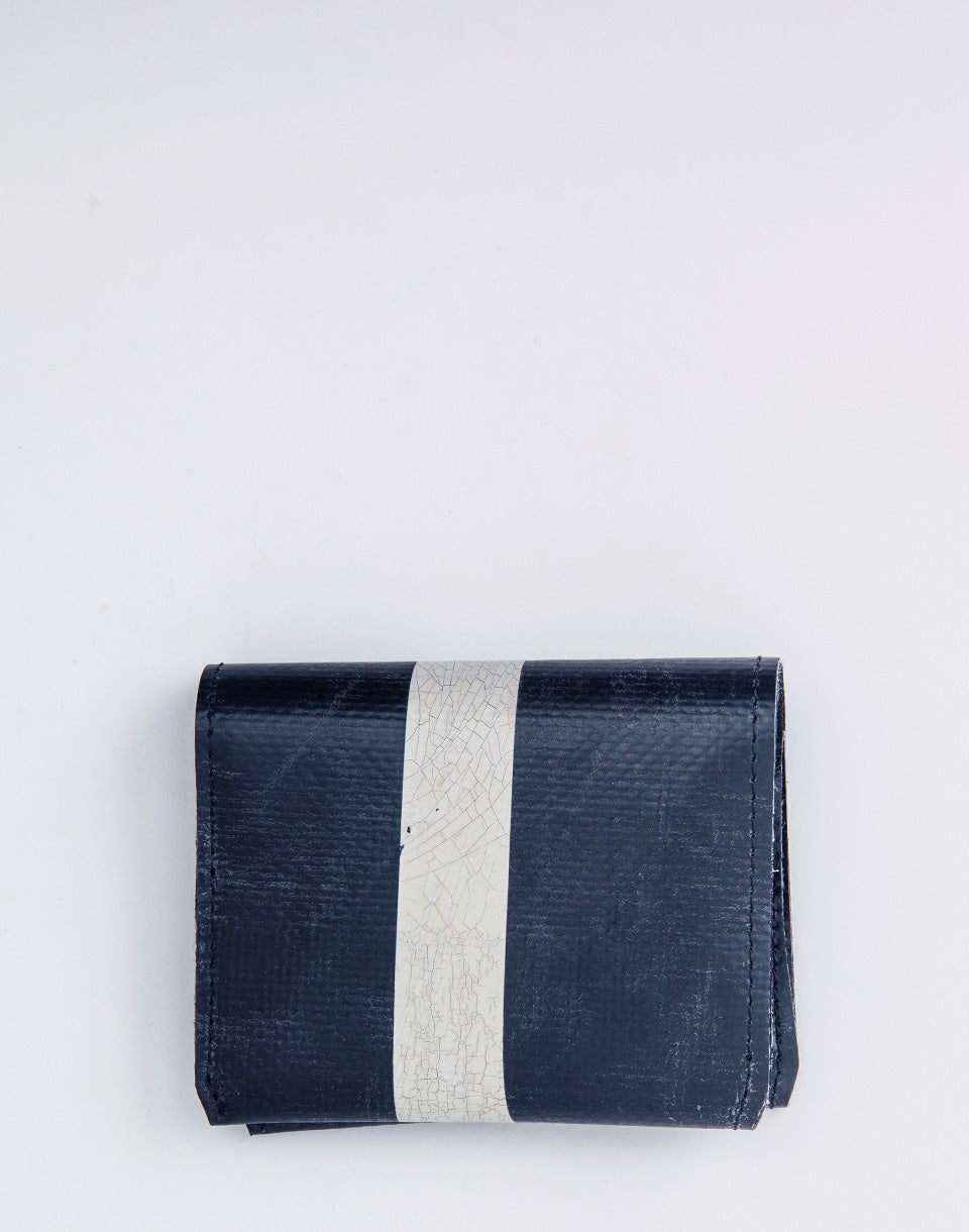 Freitag F558 Leonard - Un portefeuille pliant simple avec un compartiment de pièces et un espace pour vos cartes. De plus, il est fabriqué à partir de bâches de camions d'occasion, ce qui fait que chaque portefeuille produit une pièce complètement unique.