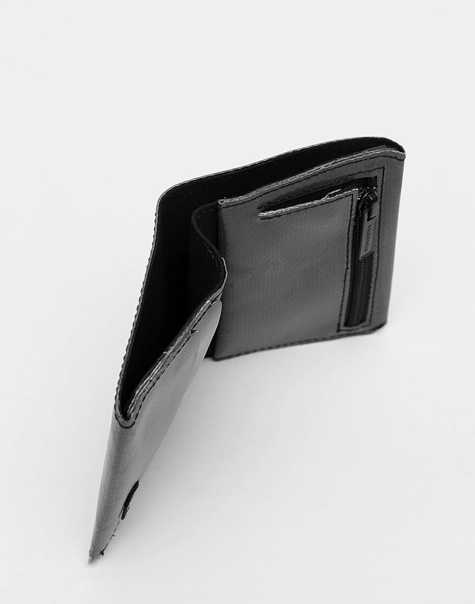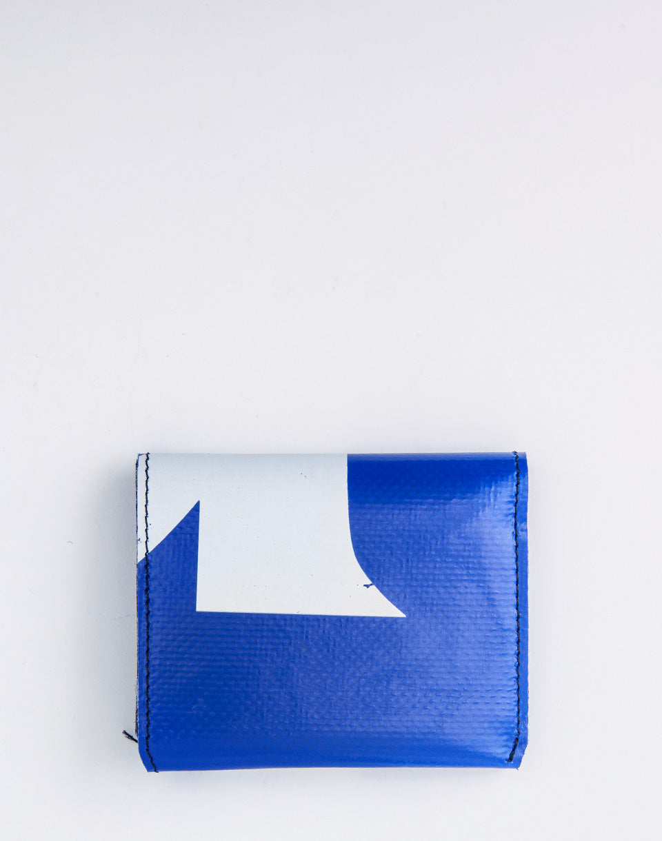 Freitag F558 Leonard - Un portefeuille pliant simple avec un compartiment de pièces et un espace pour vos cartes. De plus, il est fabriqué à partir de bâches de camions d'occasion, ce qui fait que chaque portefeuille produit une pièce complètement unique.