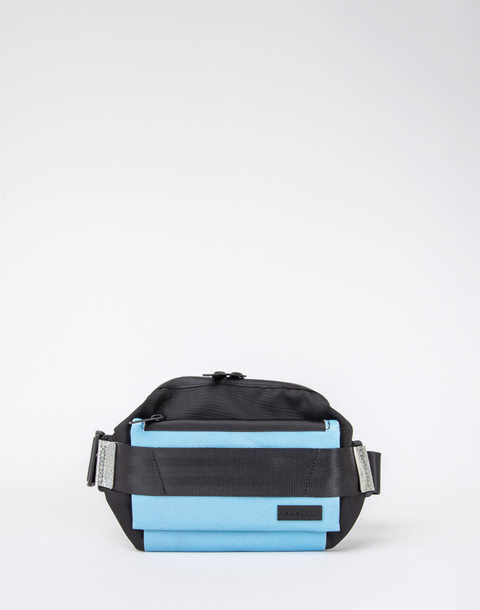 Freitag F675 Dixon - Sac de fronde réflexive, recyclé et unique à base de bouteilles d'animaux de compagnie recyclées, de bâche de camion jetée, de marquages de contour de camions recyclés réfléchissants et de ceintures de sécurité automobile B-Stock.