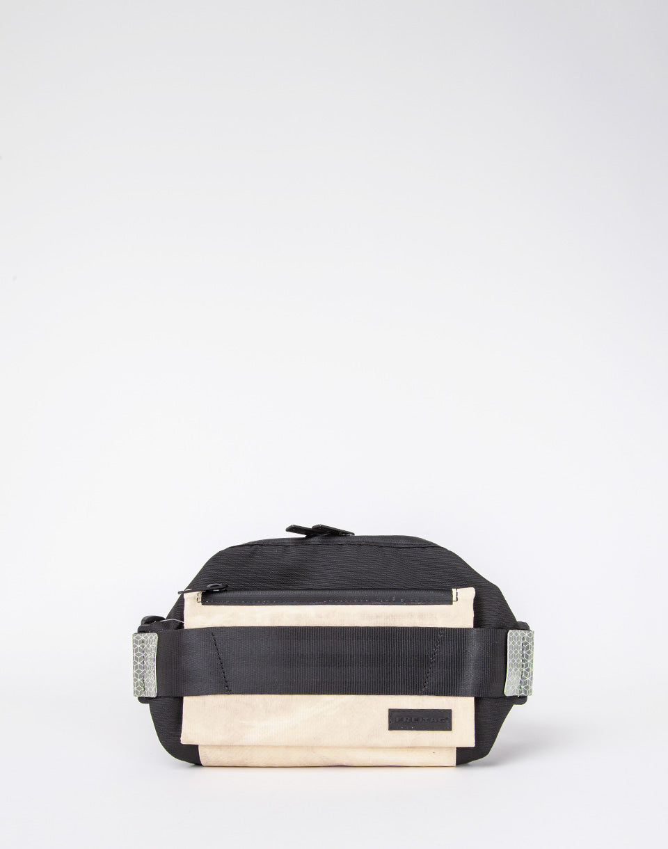 Freitag F675 Dixon - Sac de fronde réflexive, recyclé et unique à base de bouteilles d'animaux de compagnie recyclées, de bâche de camion jetée, de marquages de contour de camions recyclés réfléchissants et de ceintures de sécurité automobile B-Stock.