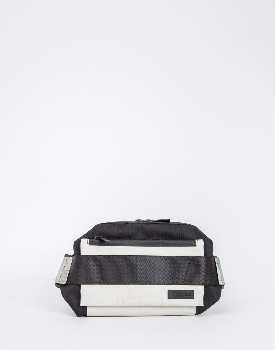 Freitag F675 Dixon - Sac de fronde réflexive, recyclé et unique à base de bouteilles d'animaux de compagnie recyclées, de bâche de camion jetée, de marquages de contour de camions recyclés réfléchissants et de ceintures de sécurité automobile B-Stock.