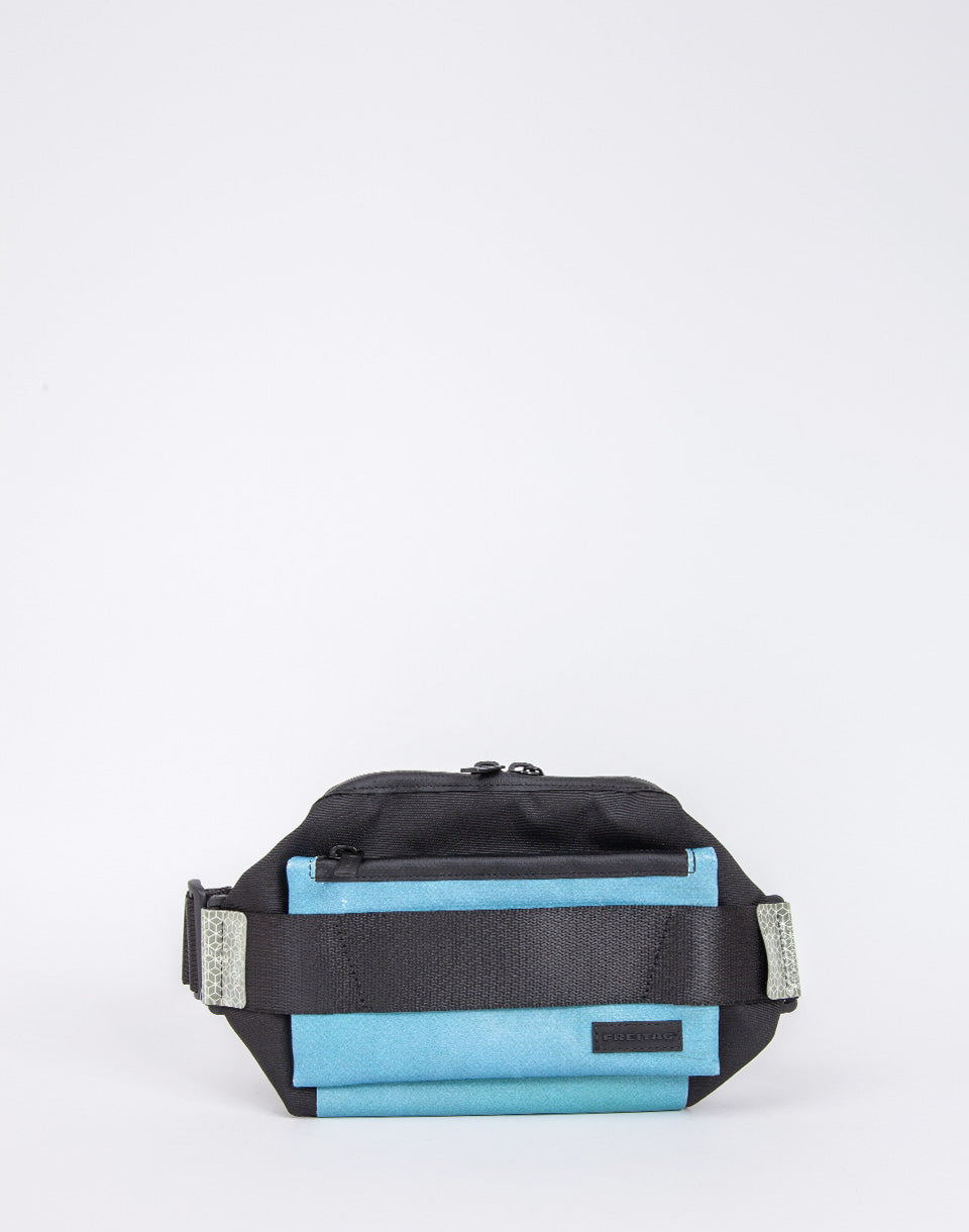 Freitag F675 Dixon - Sac de fronde réflexive, recyclé et unique à base de bouteilles d'animaux de compagnie recyclées, de bâche de camion jetée, de marquages de contour de camions recyclés réfléchissants et de ceintures de sécurité automobile B-Stock.