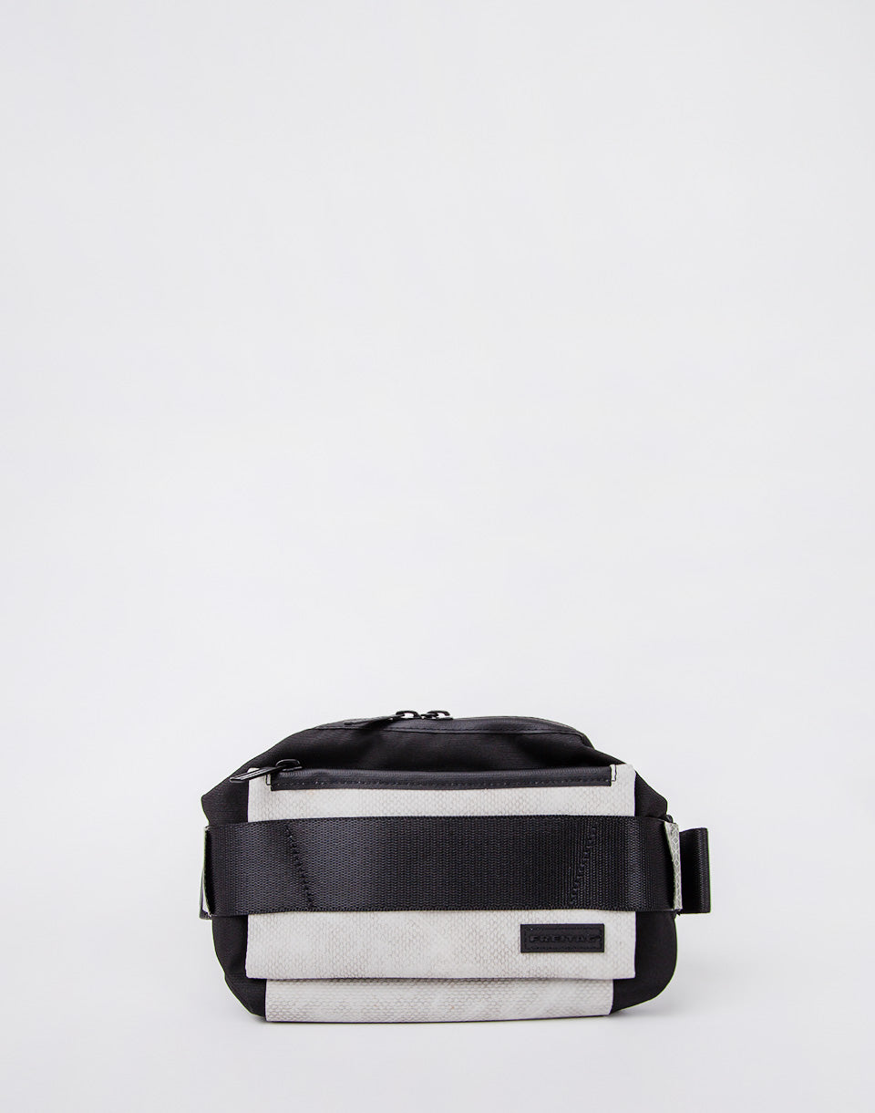 Freitag F675 Dixon - Sac de fronde réflexive, recyclé et unique à base de bouteilles d'animaux de compagnie recyclées, de bâche de camion jetée, de marquages de contour de camions recyclés réfléchissants et de ceintures de sécurité automobile B-Stock.