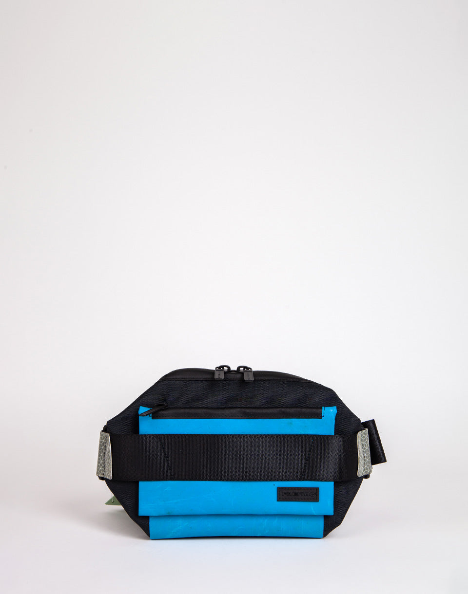 Freitag F675 Dixon - Sac de fronde réflexive, recyclé et unique à base de bouteilles d'animaux de compagnie recyclées, de bâche de camion jetée, de marquages de contour de camions recyclés réfléchissants et de ceintures de sécurité automobile B-Stock.