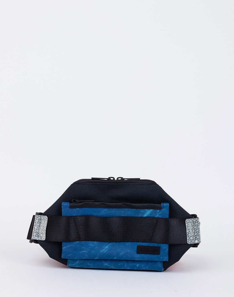 Freitag F675 Dixon - Sac de fronde réflexive, recyclé et unique à base de bouteilles d'animaux de compagnie recyclées, de bâche de camion jetée, de marquages de contour de camions recyclés réfléchissants et de ceintures de sécurité automobile B-Stock.