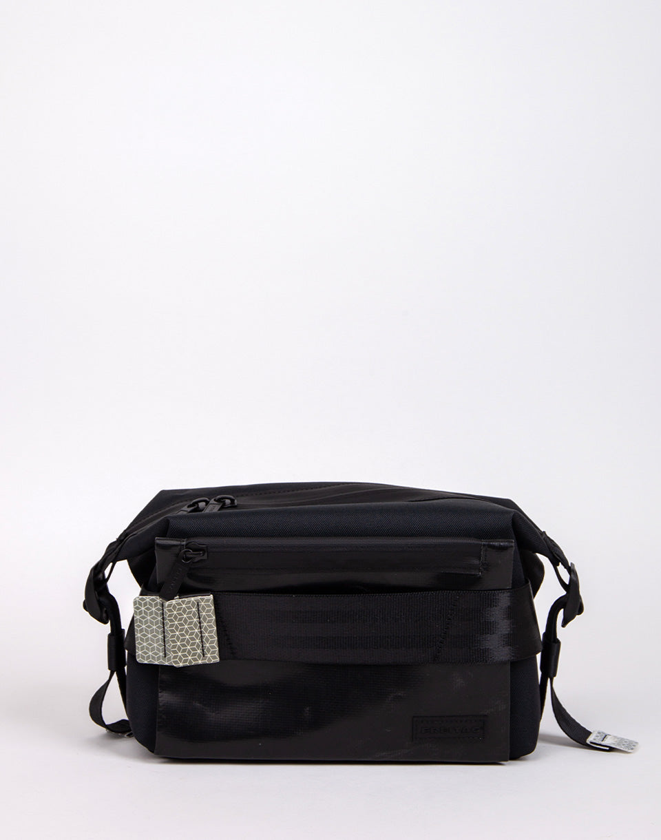 Freitag F670 Warren - sac à bandoulière réfléchissant et unique avec bandoulière réglable, qui peut être porté comme un rein plus grand. Il est fabriqué à partir de bouteilles d'animaux recyclées et avec des parties de voiles de camion à la retraite, y compris des marques de réflexion recyclées.