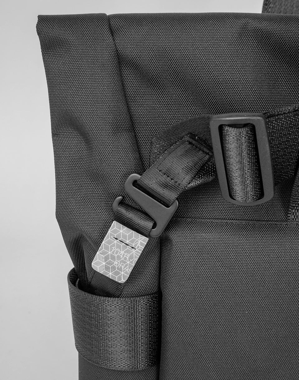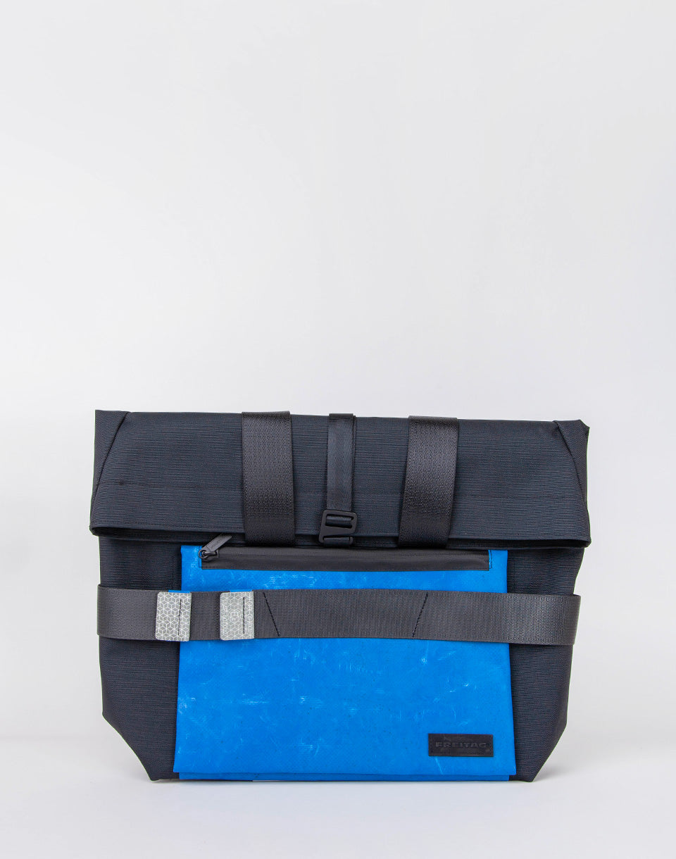 Freitag F680 Anderson - Sac extensible avec bandoulière réglable qui peut être transportée dans la main sous forme de sac fourre-tout. Il est fabriqué à partir de bouteilles d'animaux recyclées et avec des parties de voiles de camion à la retraite, y compris des marques réfléchissantes recyclées.