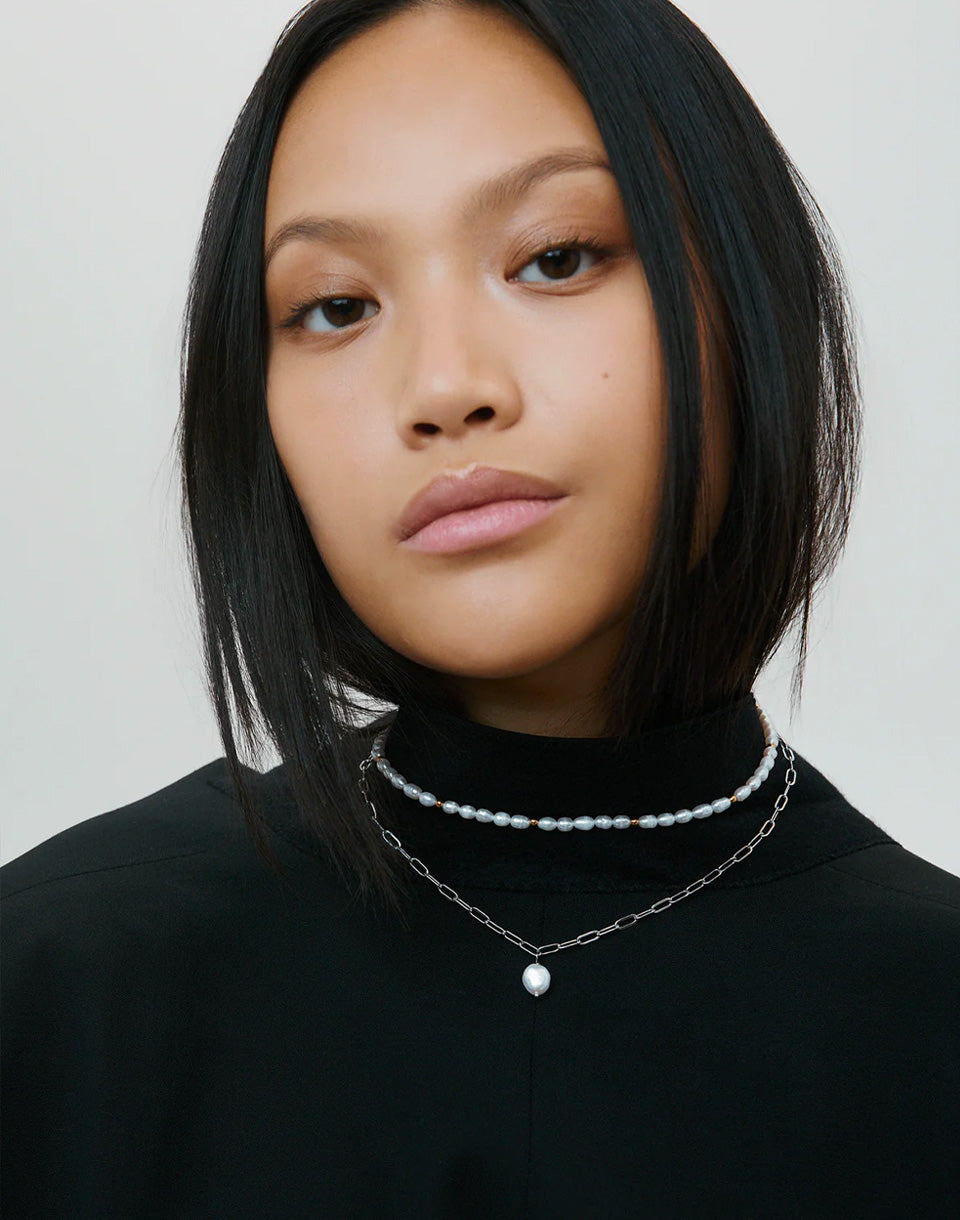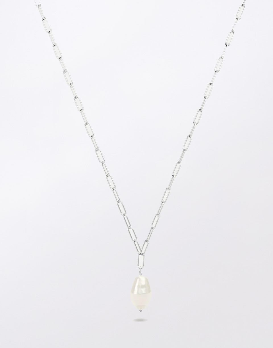 Collier Furiosa Divine - Un collier simple avec un pendentif en perle d'eau douce naturelle fabriqué à partir d'acier chirurgical recyclé de première qualité.