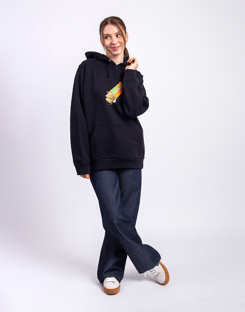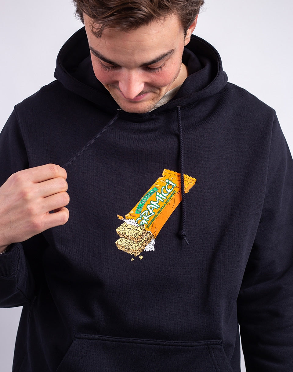 The Gramicci Granola Hooded Sweatshirt - a comfortable hoodie in soft fleeceback knit that pays homage to outdoor energy and classic granola bars - reliable companions on every trip.