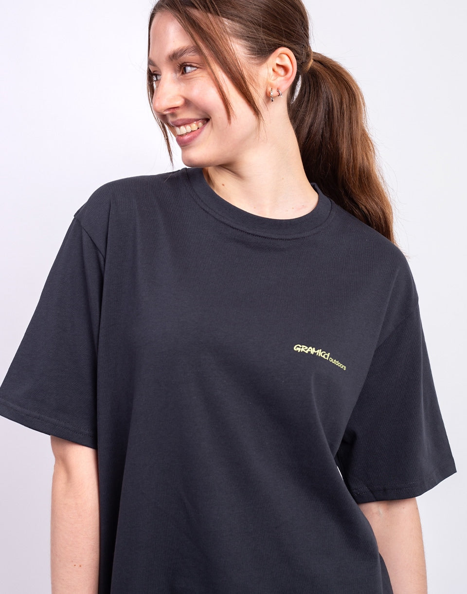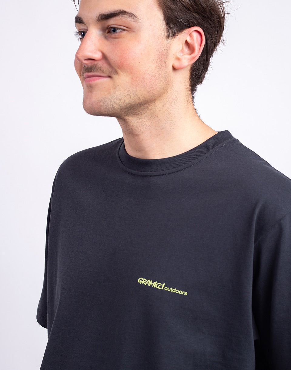 Gramicci Hurricane Tee - T-shirt made of 100% organic cotton, suitable for year-round wear with a distinctive print on the back complemented by a subtle motif on the chest.