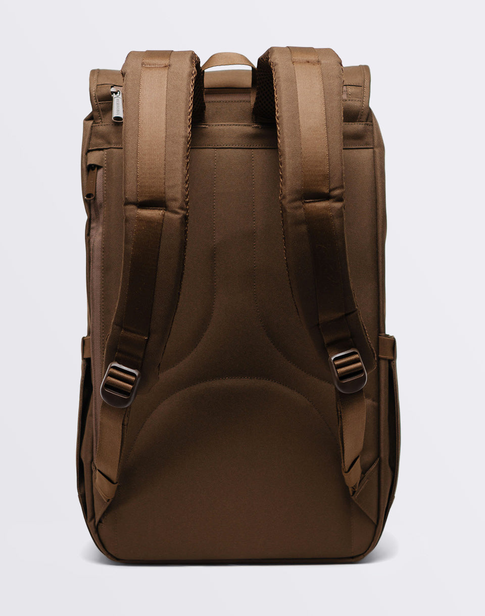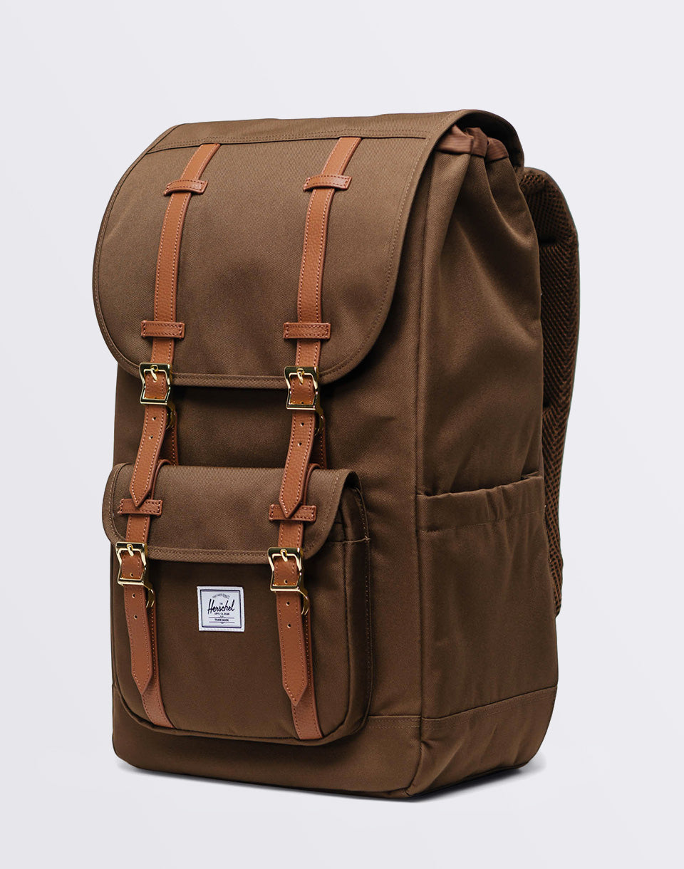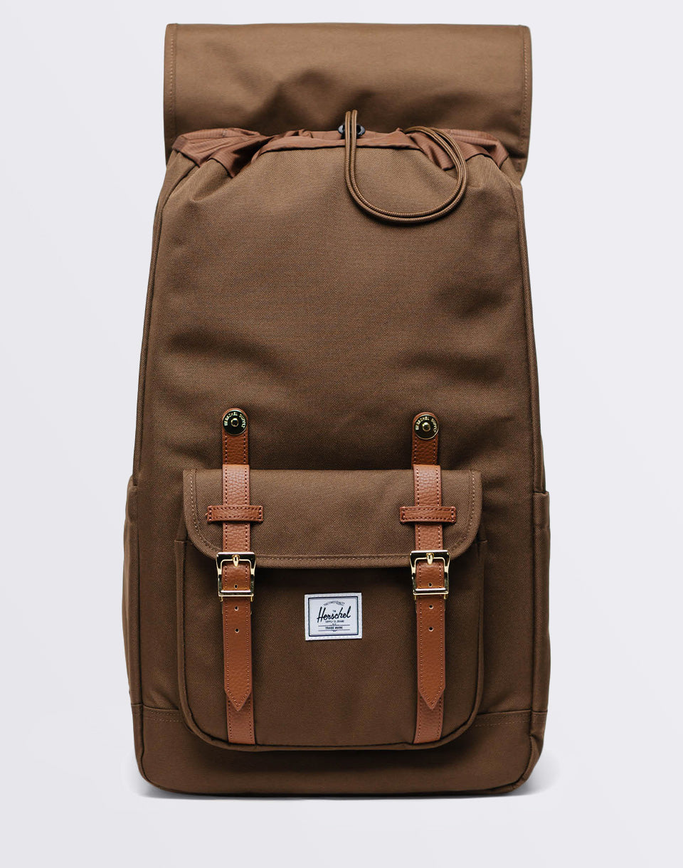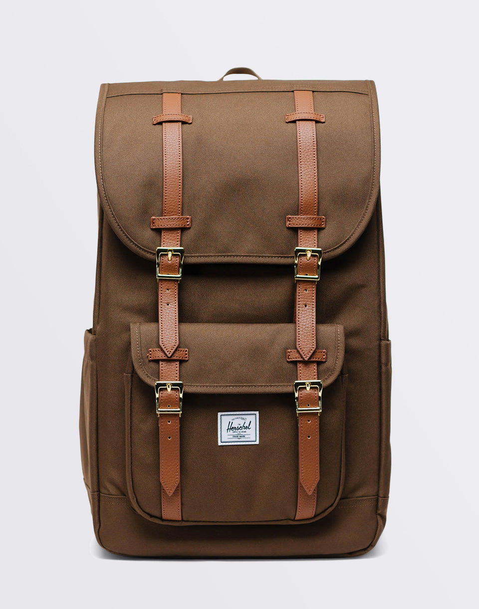 Herschel fournit Little America - un sac à dos urbain polyvalent fabriqué à partir de matériaux recyclés Ecosystem ™ fabriqués à partir de bouteilles d'animaux de compagnie 100% recyclées qui offre une manche en toison rembourrée pour un ordinateur portable de 15 "/ 16" en plus d'un design propre.
