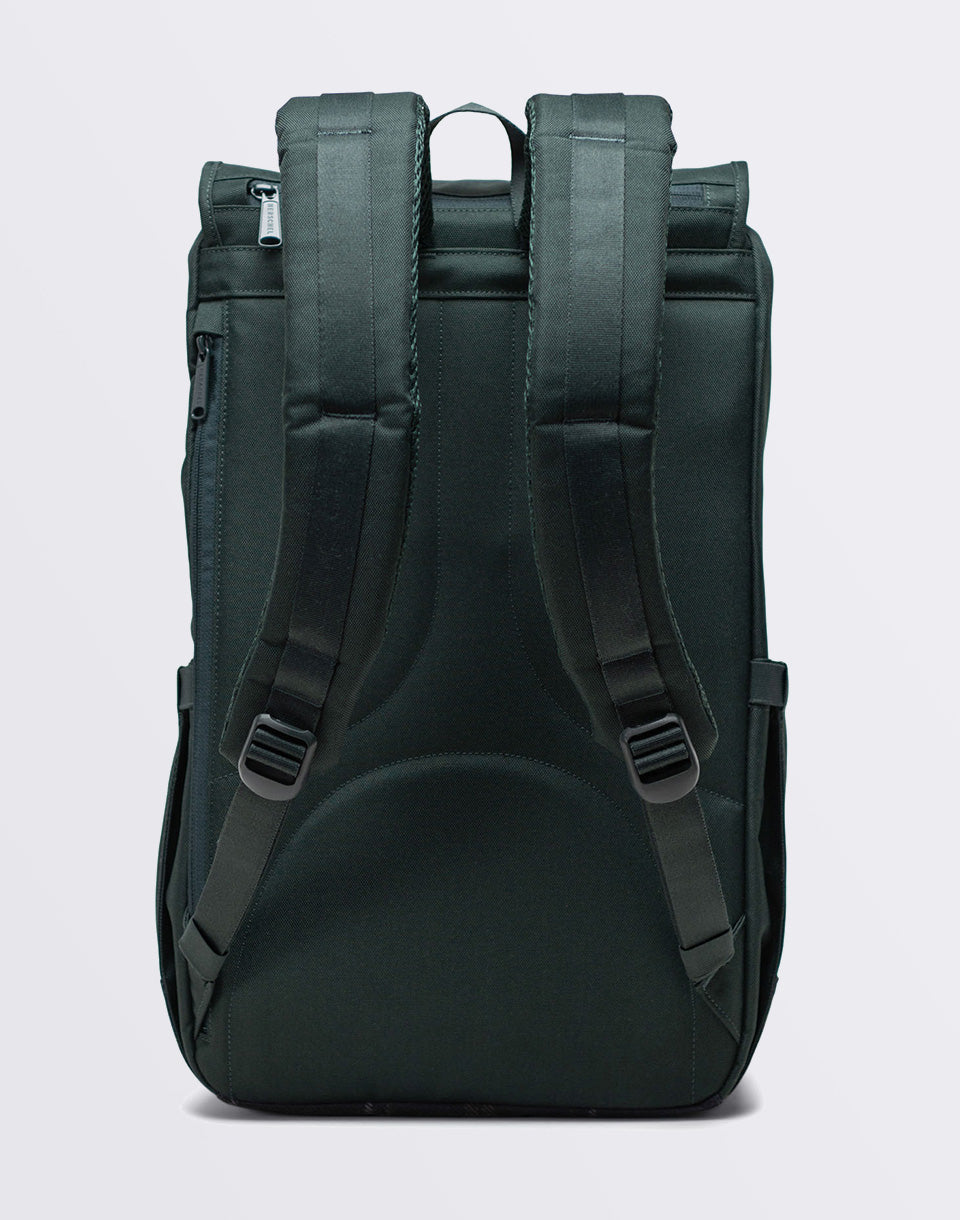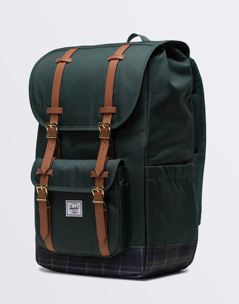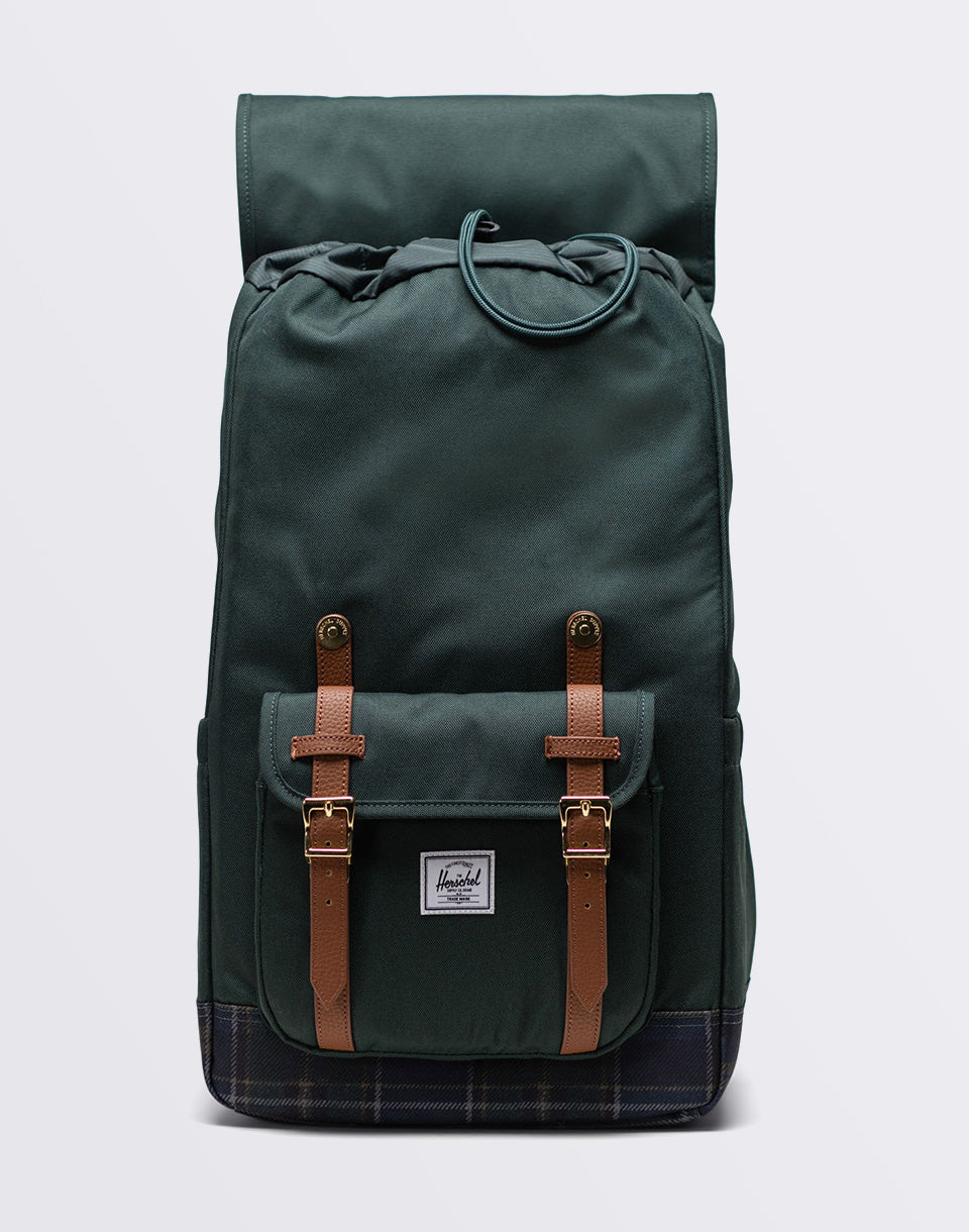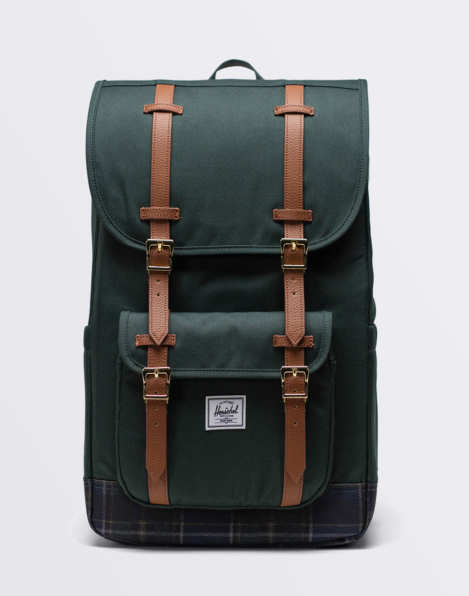 Herschel fournit Little America - un sac à dos urbain polyvalent fabriqué à partir de matériaux recyclés Ecosystem ™ fabriqués à partir de bouteilles d'animaux de compagnie 100% recyclées qui offre une manche en toison rembourrée pour un ordinateur portable de 15 "/ 16" en plus d'un design propre.