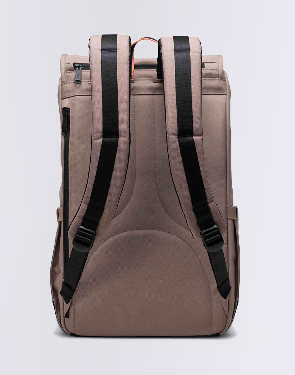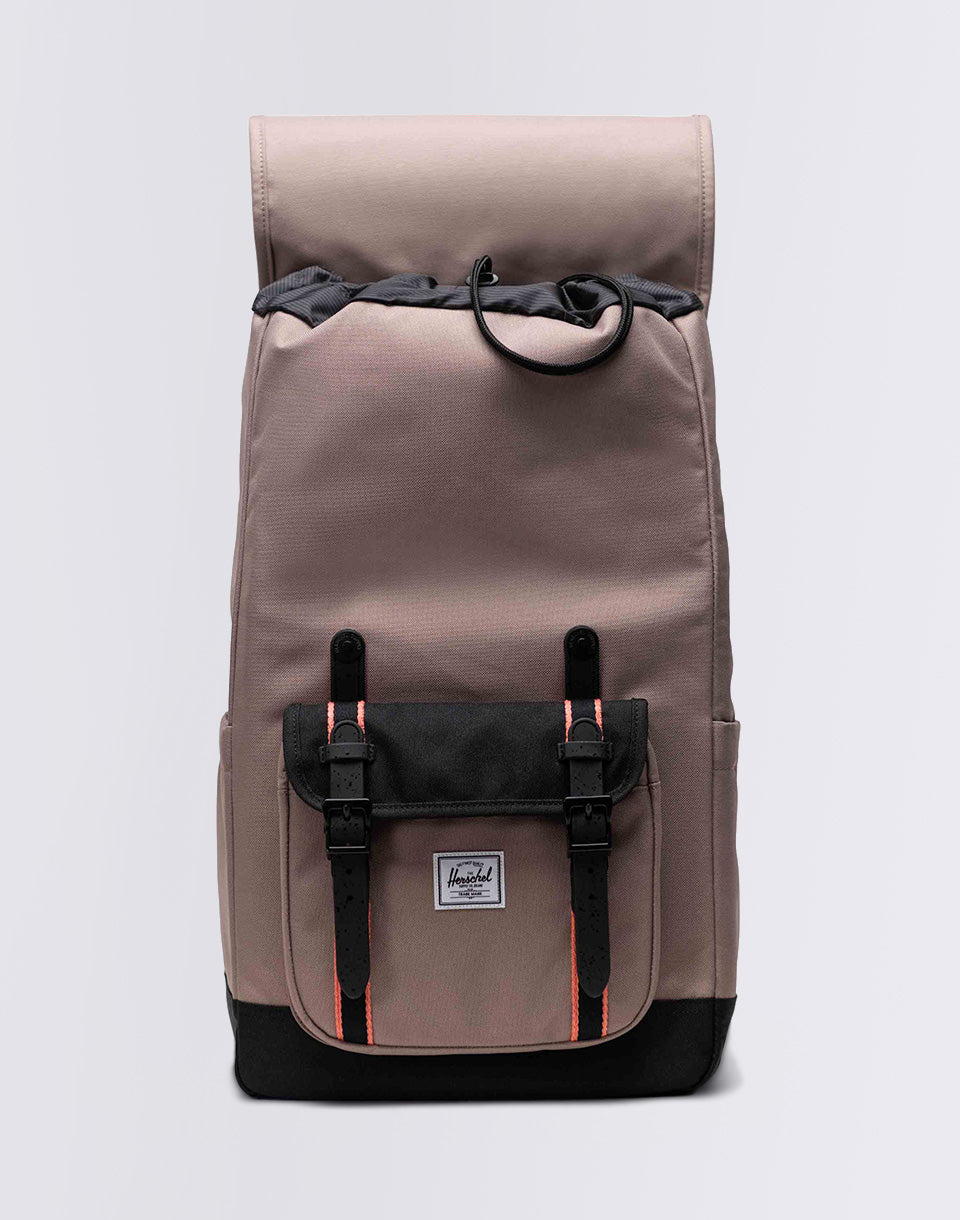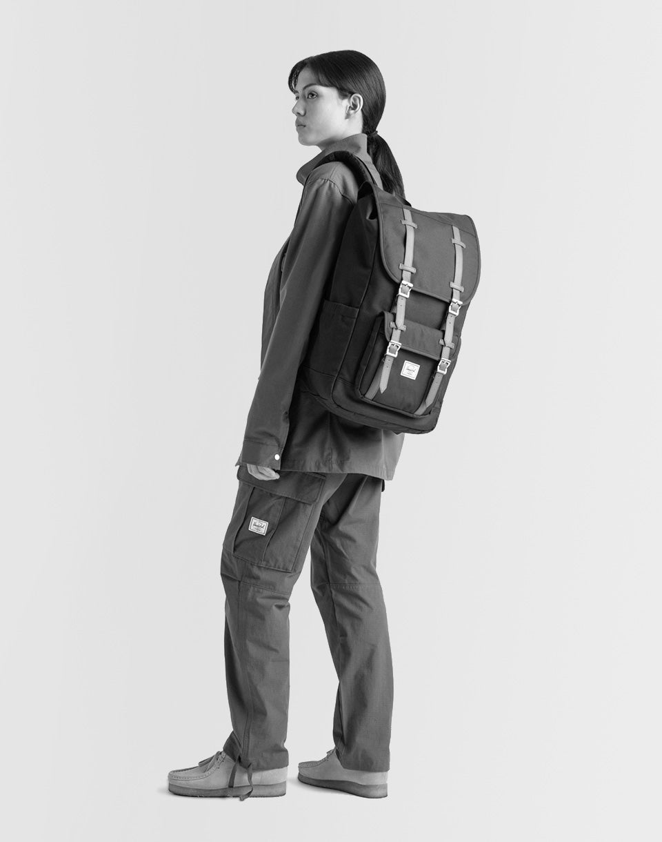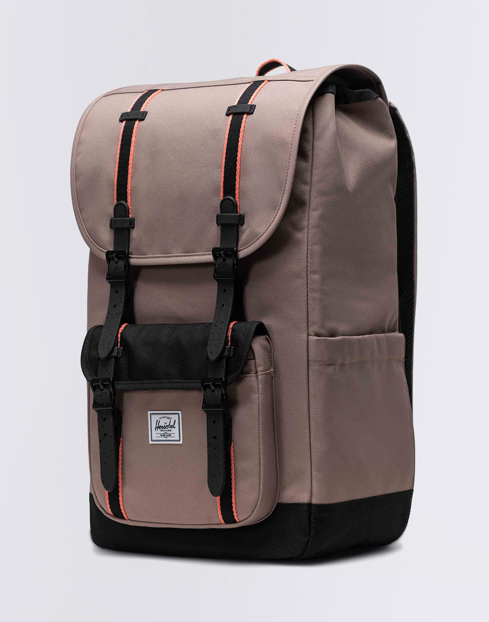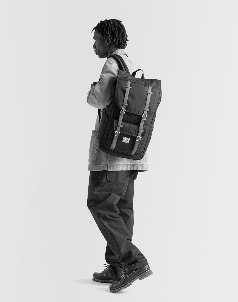 Herschel fournit Little America - un sac à dos urbain polyvalent fabriqué à partir de matériaux recyclés Ecosystem ™ fabriqués à partir de bouteilles d'animaux de compagnie 100% recyclées qui offre une manche en toison rembourrée pour un ordinateur portable de 15 "/ 16" en plus d'un design propre.