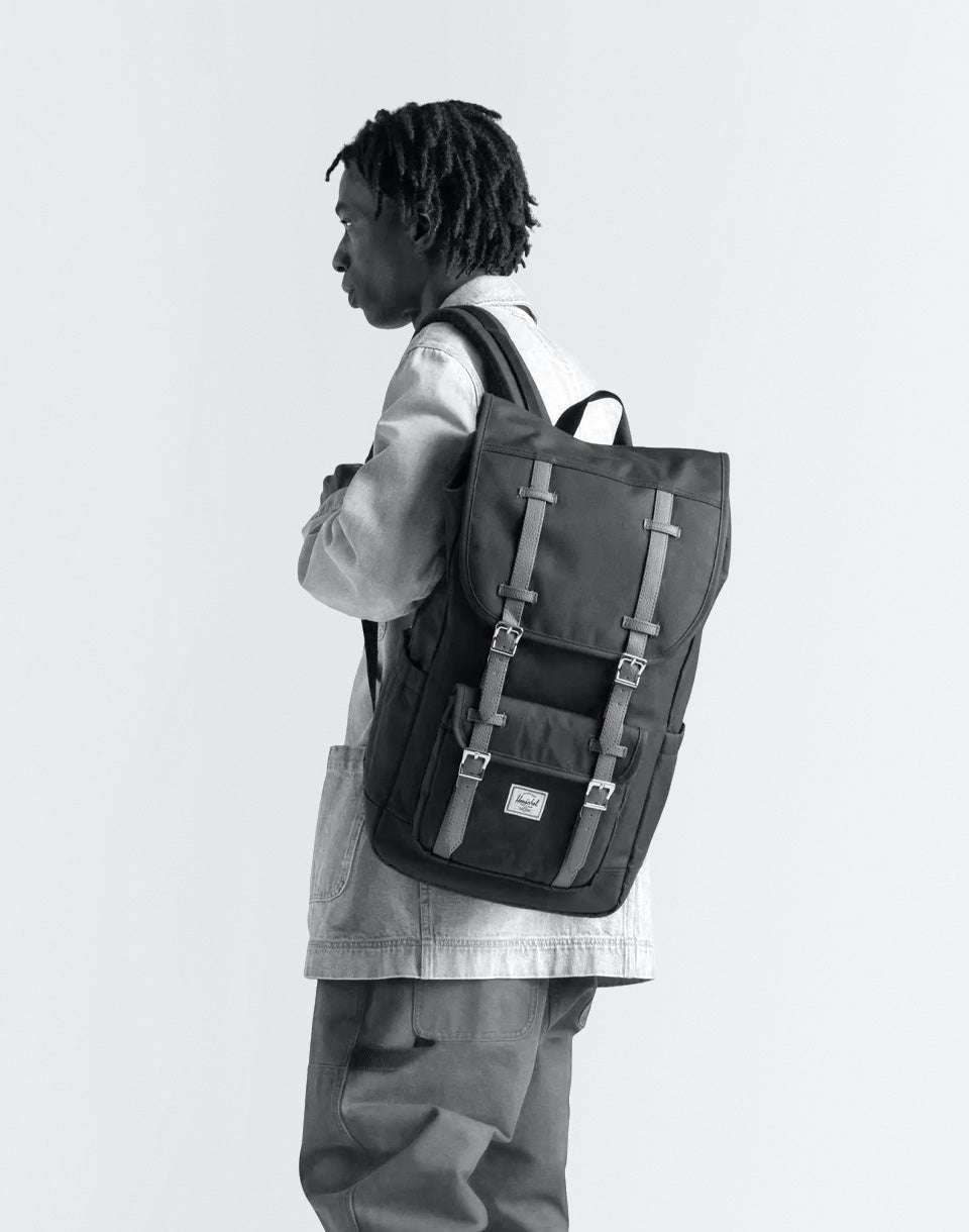 Herschel Fournit Little America ™ - Un sac à dos urbain polyvalent dans une version améliorée du matériau recyclé Ecosystem ™ fabriqué à partir de bouteilles d'animaux de compagnie 100% recyclées, offrant une manche en toison rembourrée pour un ordinateur portable de 15 "/ 16" en plus d'un design propre.