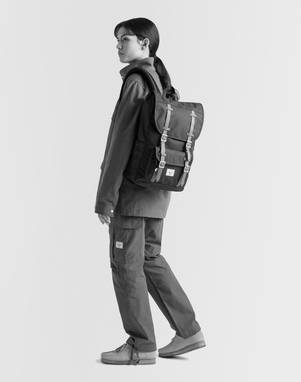 Herschel Fournit Little America ™ Mid - Une version plus petite et améliorée du sac à dos City Volydold Ecosystem ™ en bouteilles d'animaux de compagnie 100% recyclées qui offre la même taille en palette rembourrée pour un ordinateur portable de 15 "/ 16" en plus d'une taille plus petite.