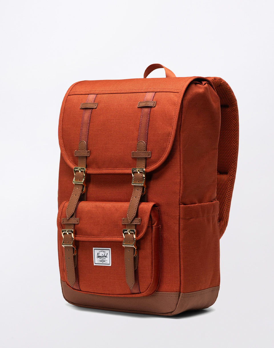 Herschel Fournit Little America ™ Mid - Une version plus petite et améliorée du sac à dos City Volydold Ecosystem ™ en bouteilles d'animaux de compagnie 100% recyclées qui offre la même taille en palette rembourrée pour un ordinateur portable de 15 "/ 16" en plus d'une taille plus petite.